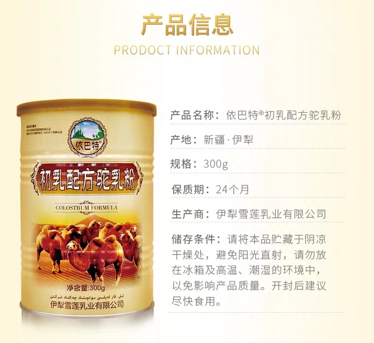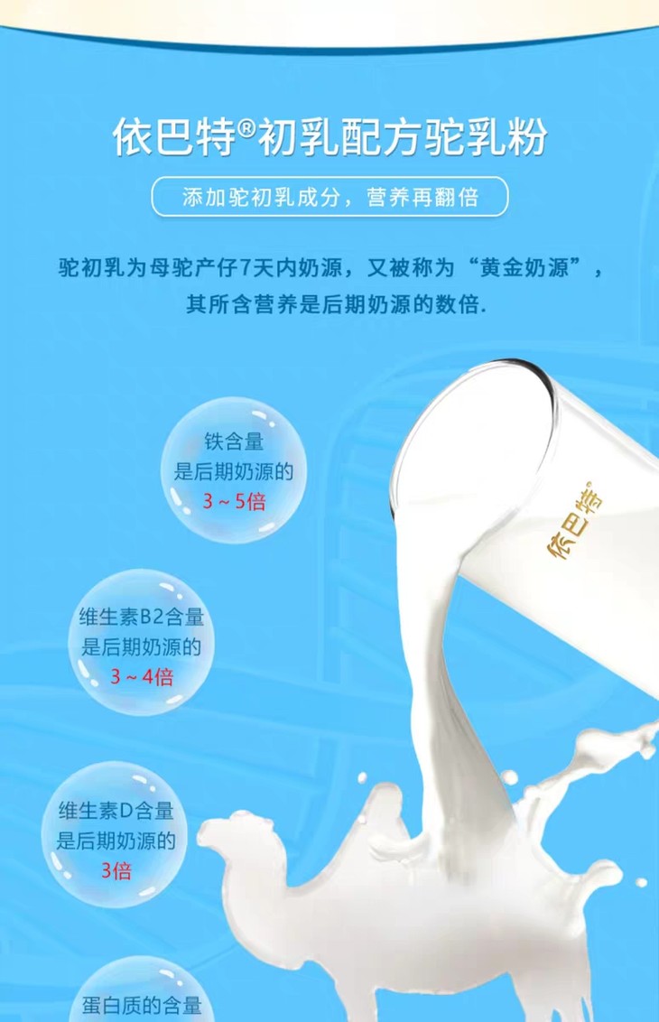 2罐装 依巴特初乳配方驼乳粉儿童中老年孕妇骆驼奶粉300g