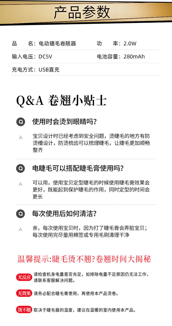 电烫睫毛卷翘器电动加热便携学生迷你眼毛神器持久定型充电式七夕情人节