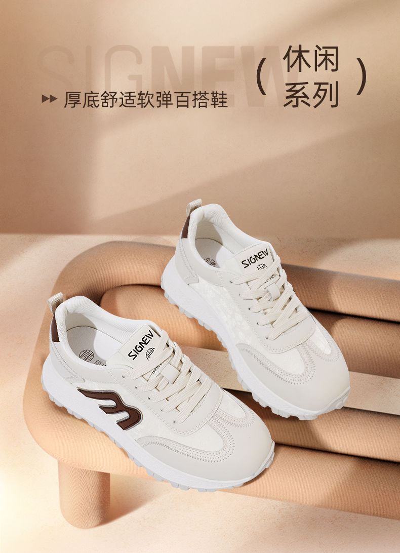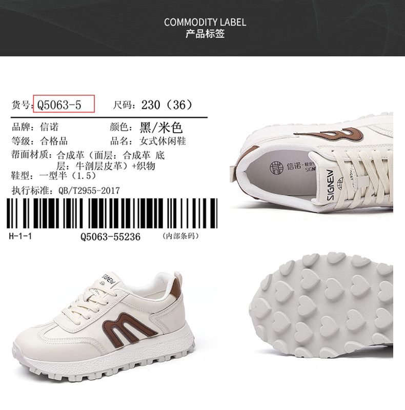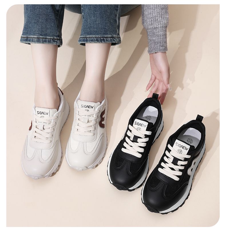 信诺女鞋子小白鞋运动鞋2024新款秋季软底阿甘厚底女士复古休闲鞋Q5063-5