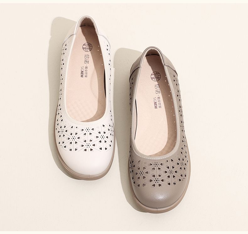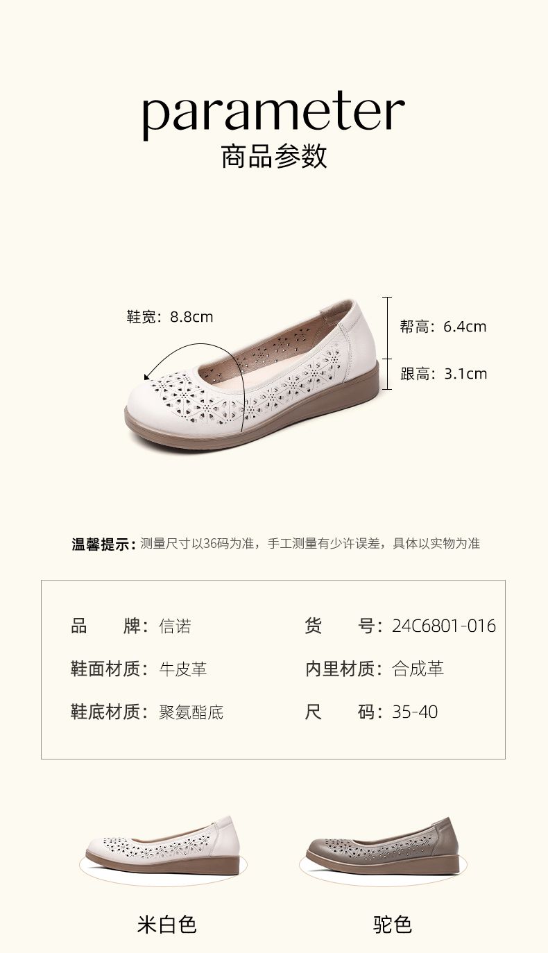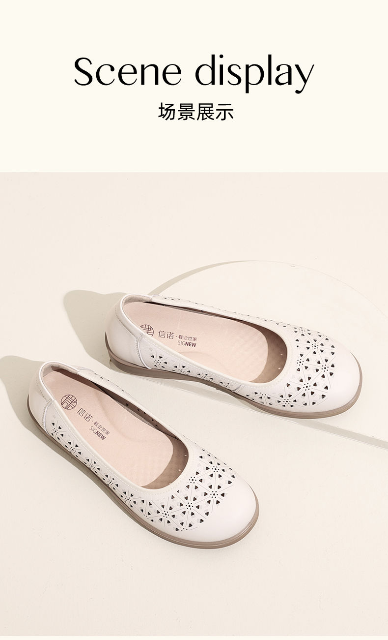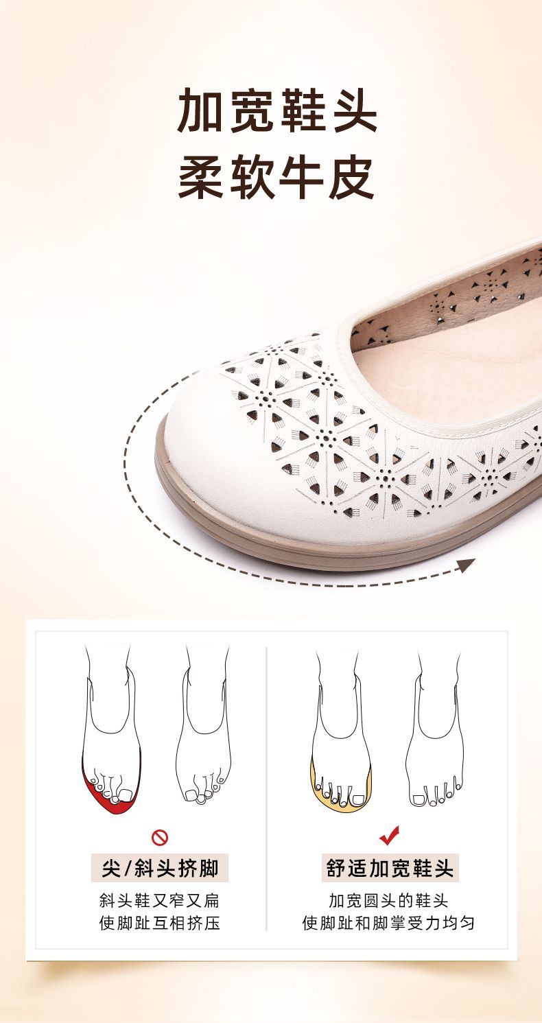 信诺 真皮舒适女鞋 2024新款夏季洞洞鞋平底镂空单鞋休闲妈妈凉鞋