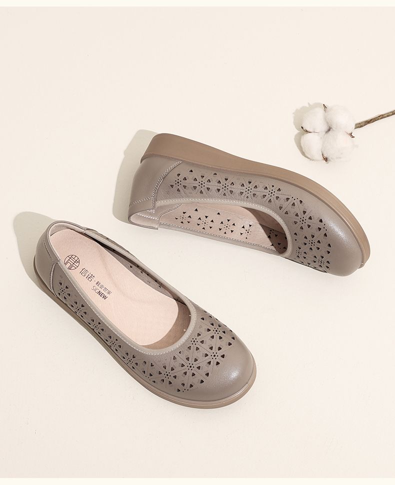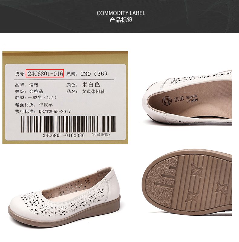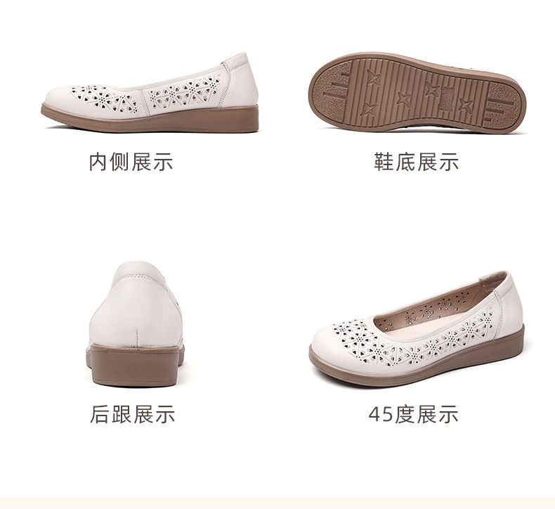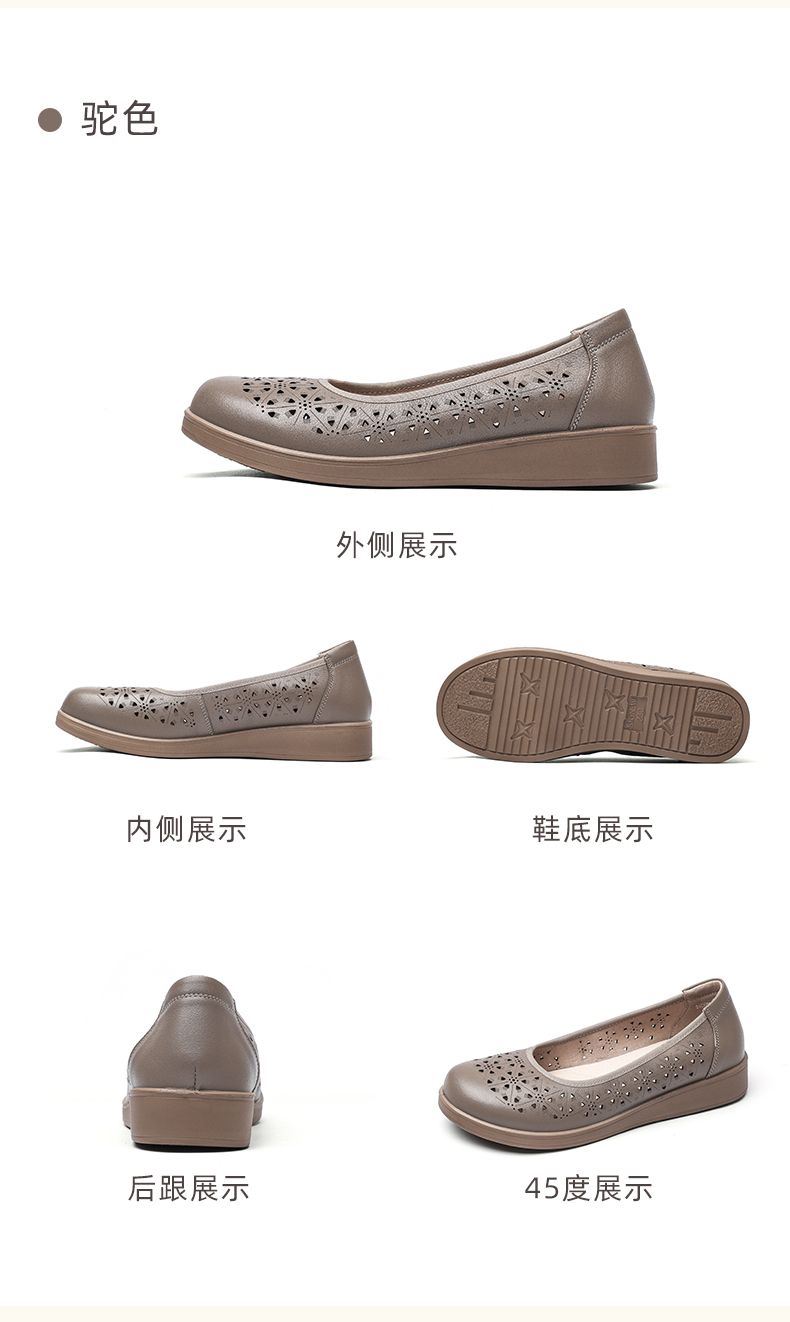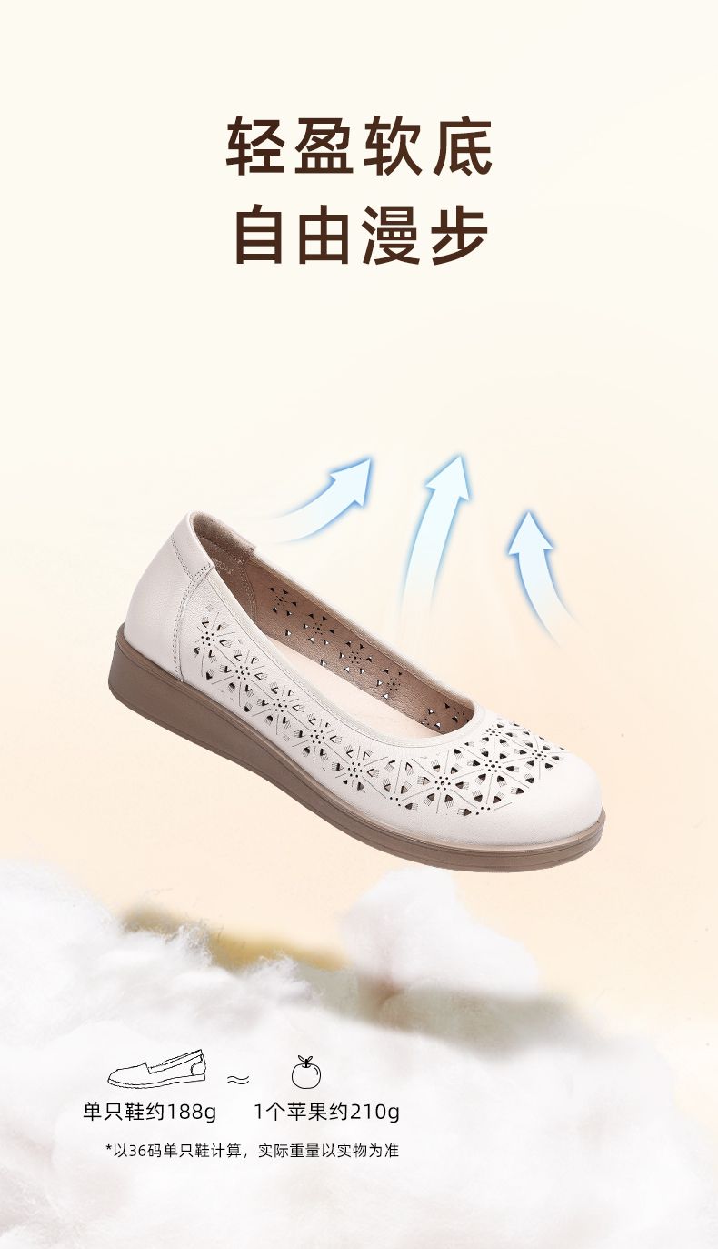 信诺 真皮舒适女鞋 2024新款夏季洞洞鞋平底镂空单鞋休闲妈妈凉鞋