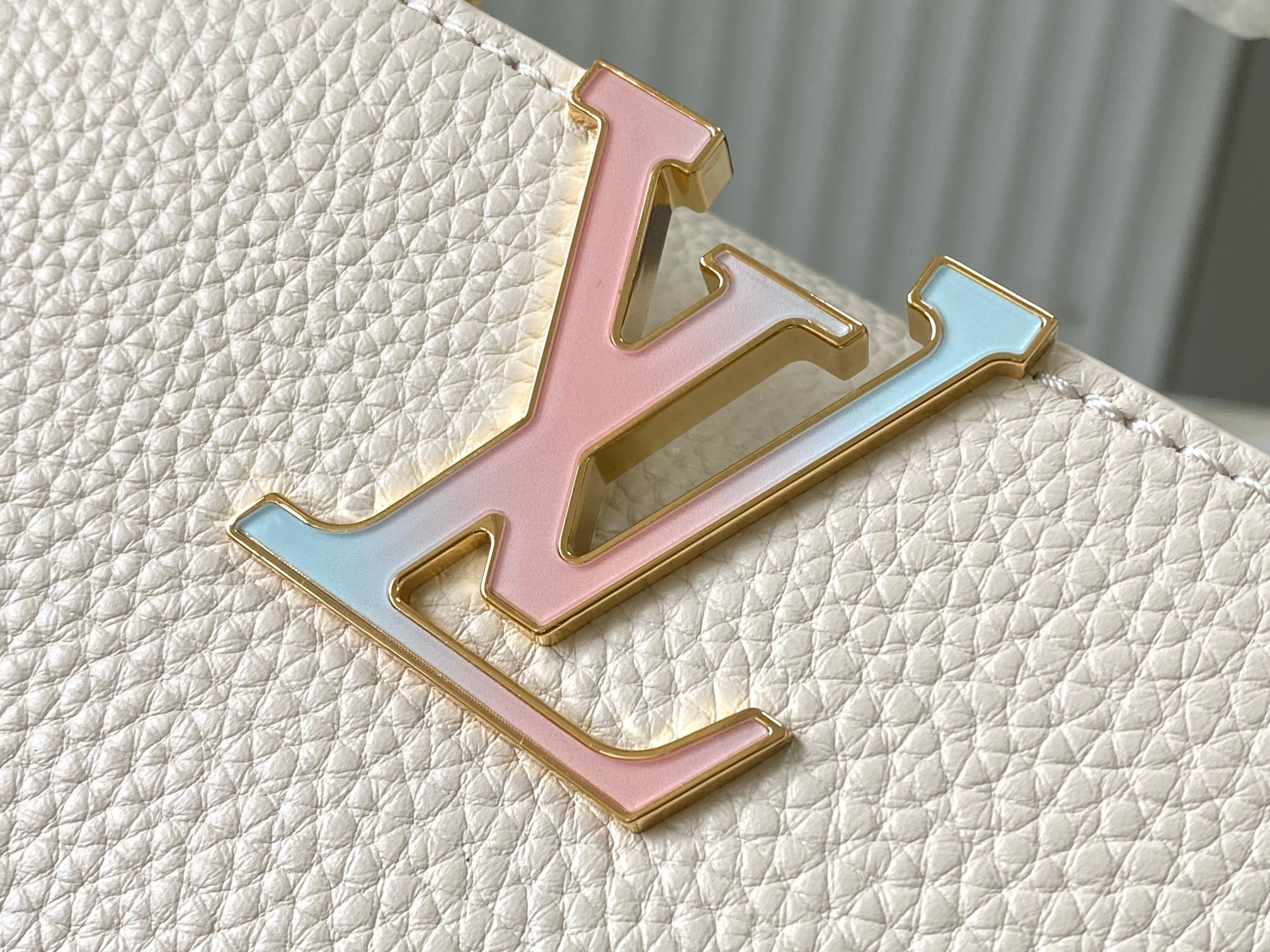 秋冬特惠💰1600 渠道级LV 新品 te级LV 全套包装 M23082/M48865七夕款 本款Capucines手袋出自 Milky Way系列 为情人佳节呈献专属勤力臻礼 Taurillon皮革浸染柔美色调 金属件的耀目光芒和彩虹渐变映衬雅致对比 可拆卸链条和皮革肩带方便肩背或斜挎 Size:21 * 14 * 8 cm
