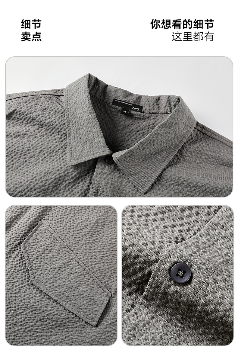 GXG男装25秋季日常通勤简约纯色休闲工装外套男式翻领长袖衬衫K&C