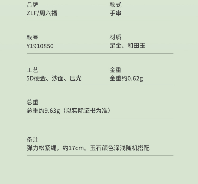 周六福 周六福 十二生肖黄金手链 5D硬金 足金本命年手串 定价