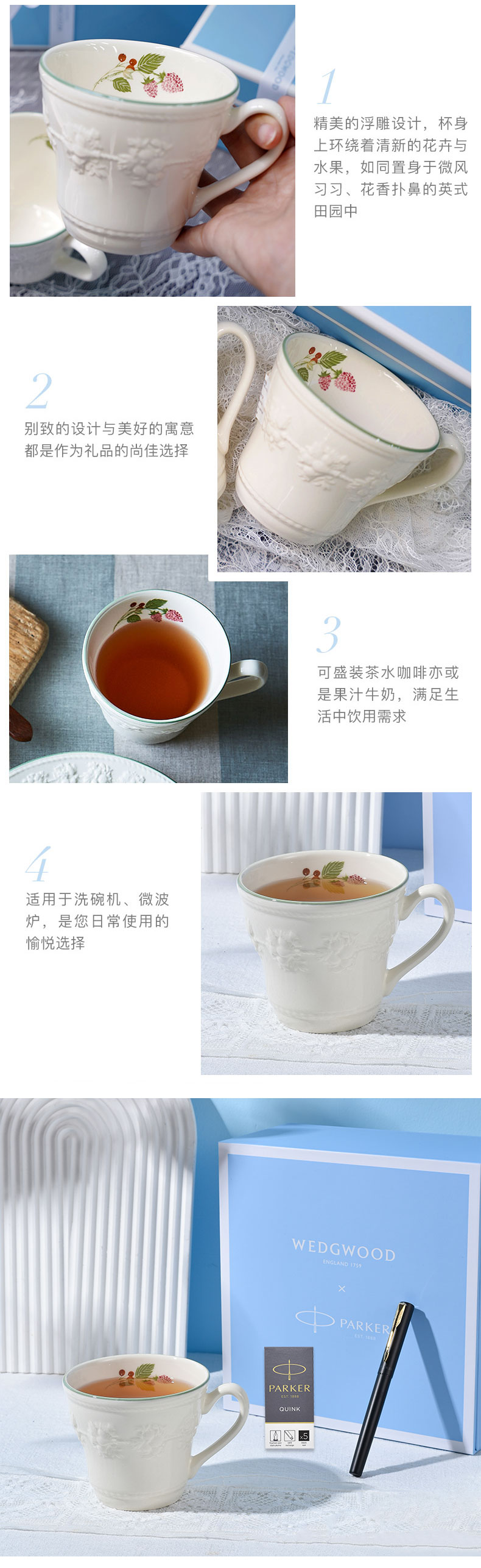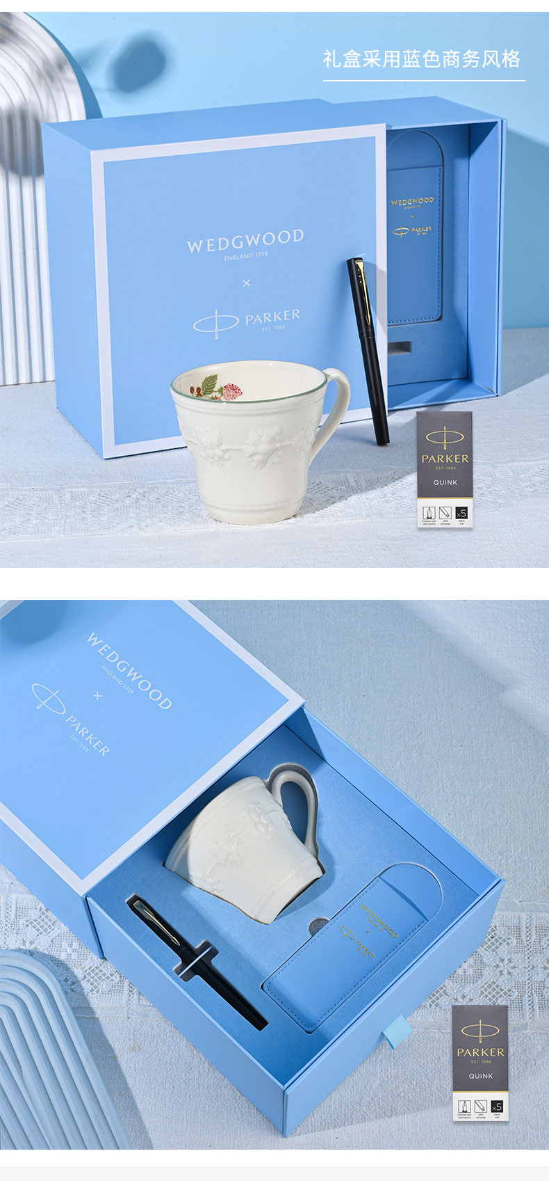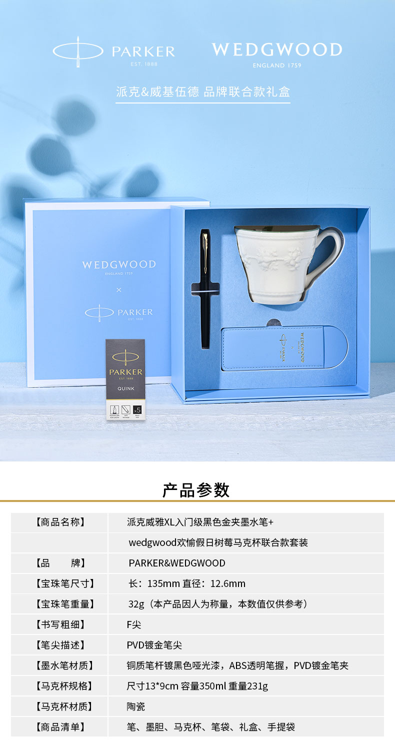 派克威雅XL入门级黑色金夹墨水笔+wedgwood欢愉假日树莓马克杯联合款套装