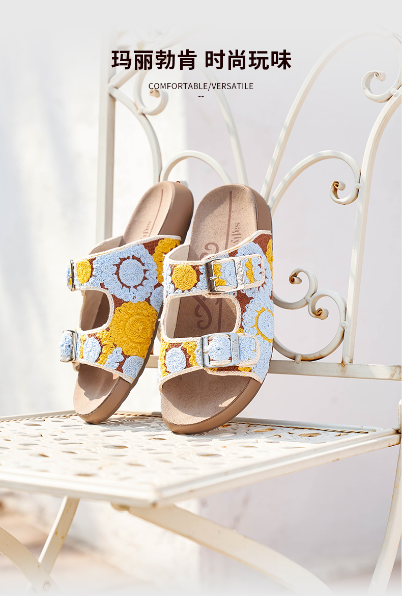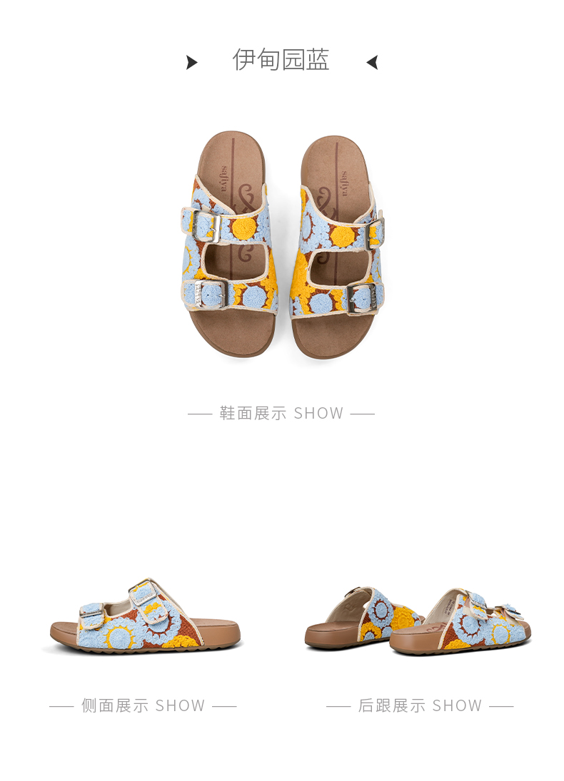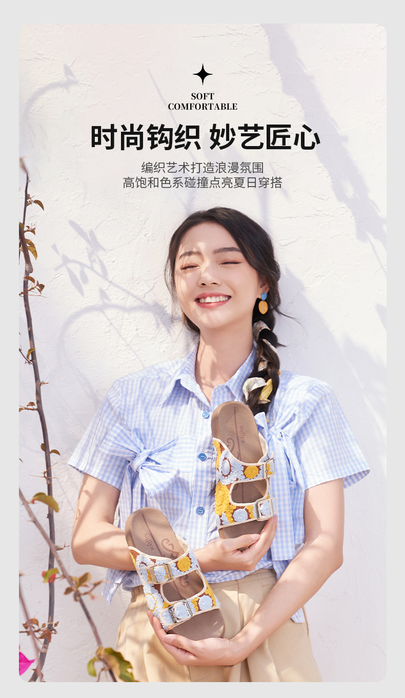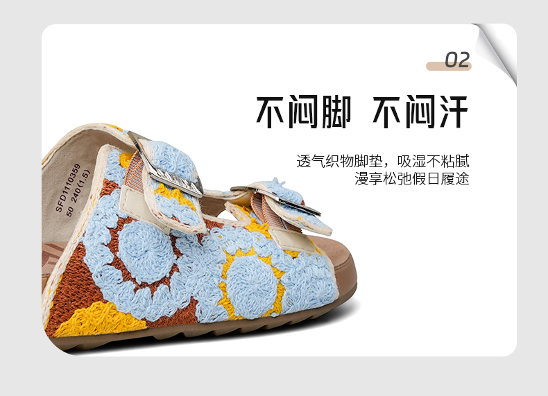 预售12天|Safiya/索菲娅2025时尚钩针编织拼色外穿沙滩休闲勃肯平底凉拖 SFD2110359