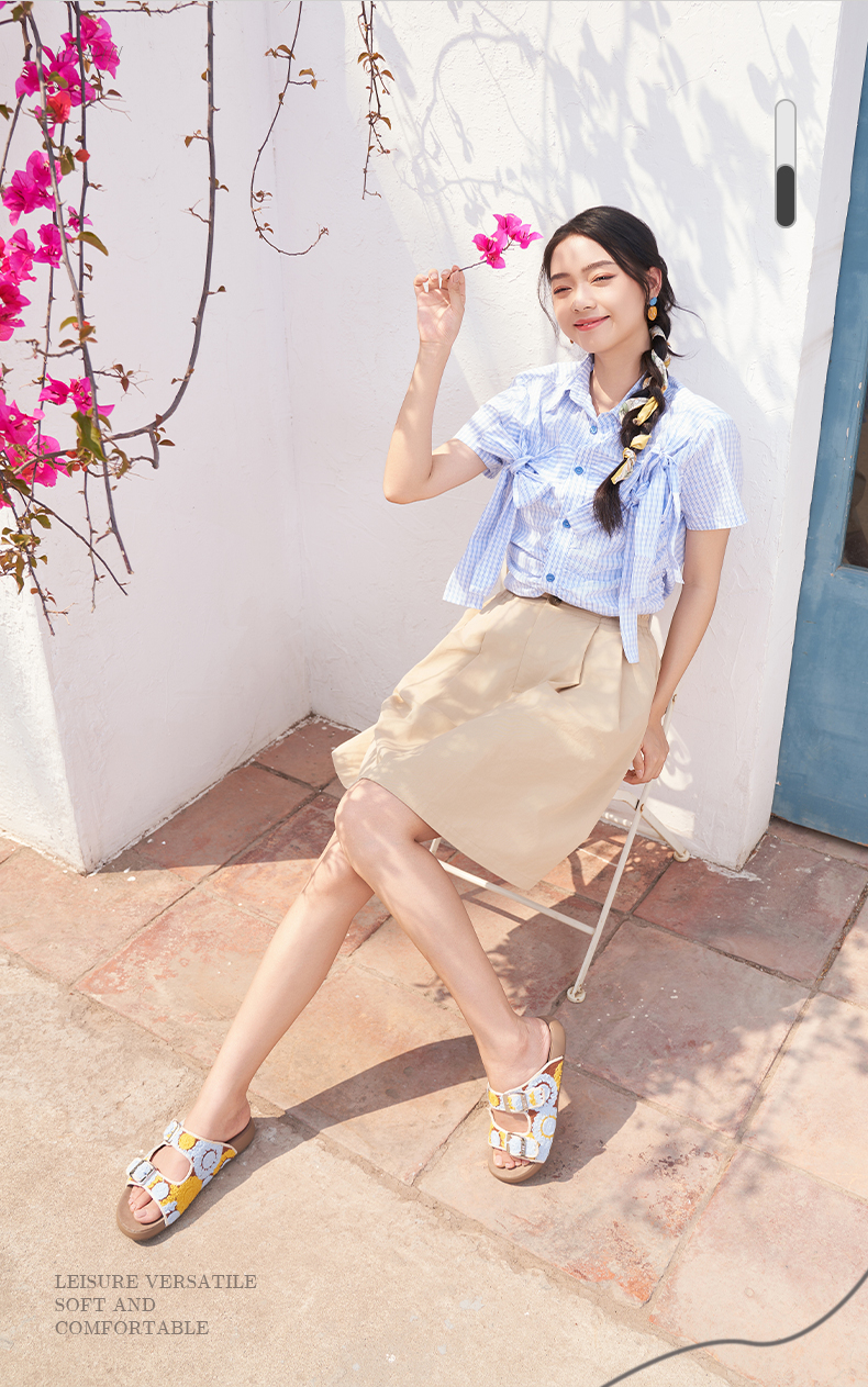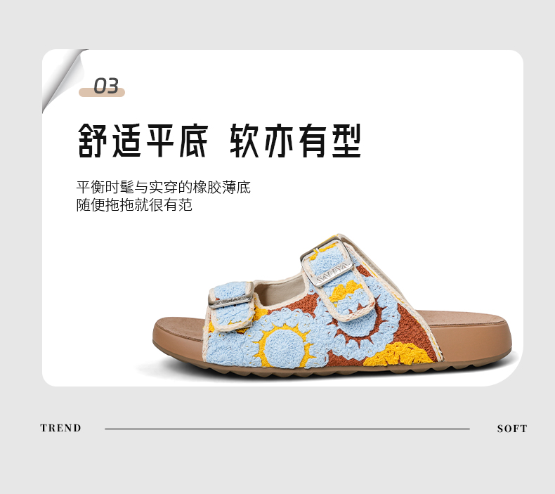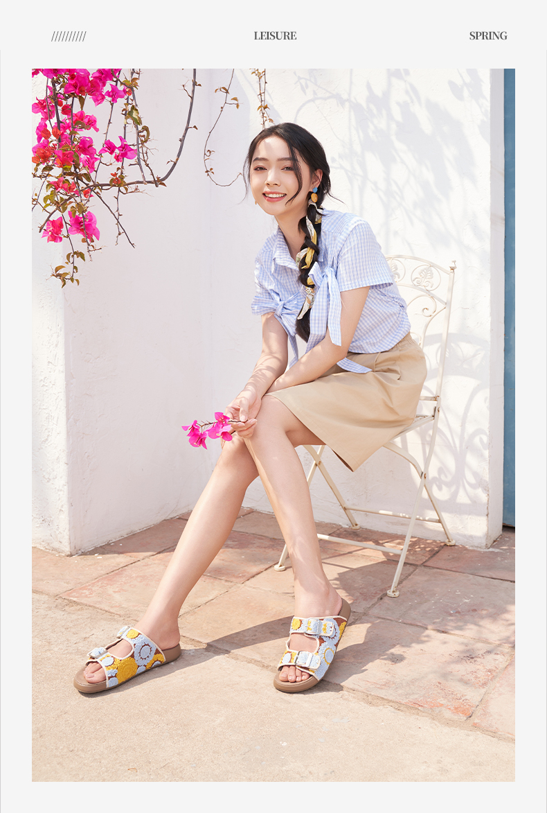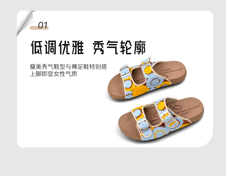 预售12天|Safiya/索菲娅2025时尚钩针编织拼色外穿沙滩休闲勃肯平底凉拖 SFD2110359