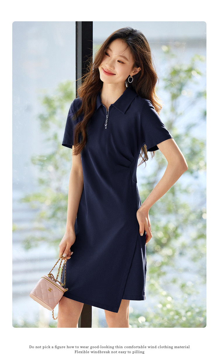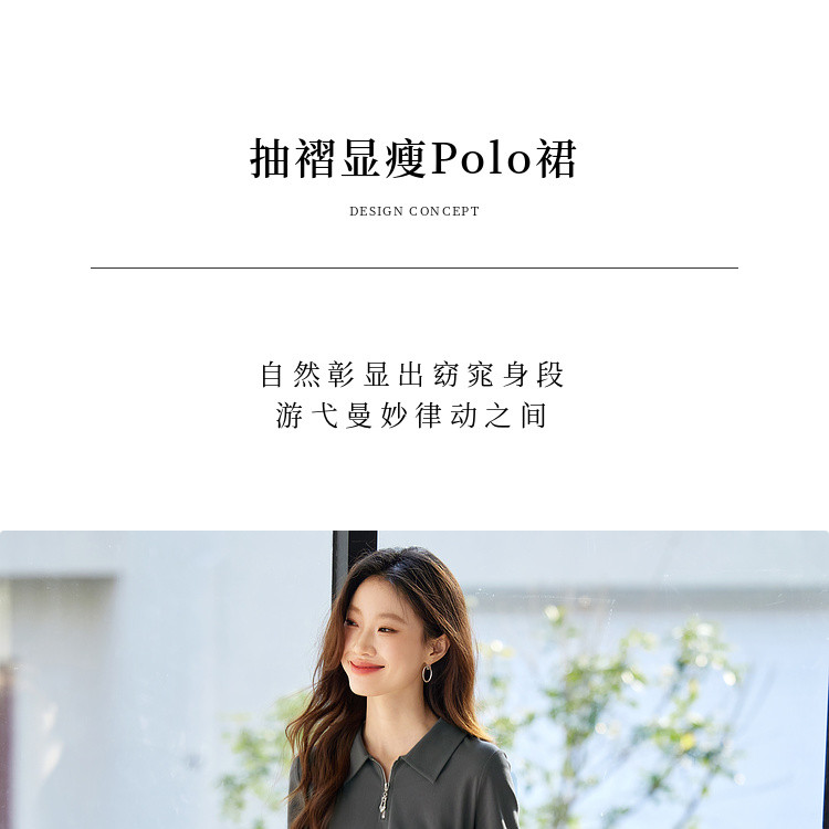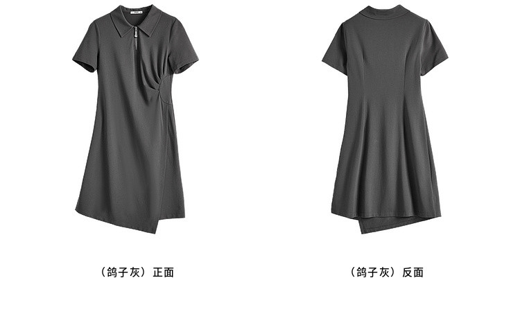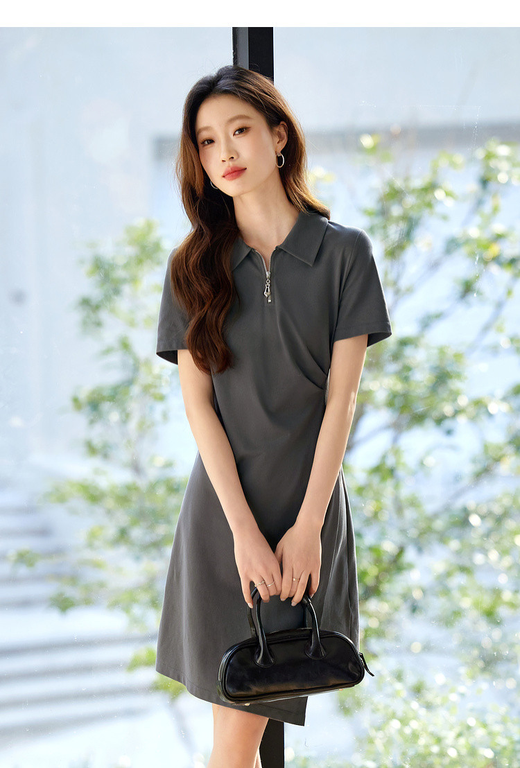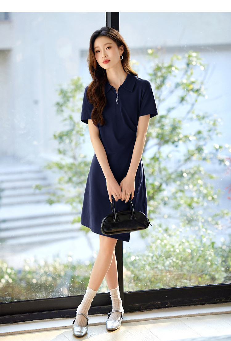 【周四狂欢价】熙世界透气拉链POLO裙女25夏新款直筒短袖抽褶显瘦不规则连衣裙子