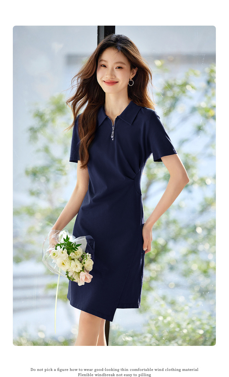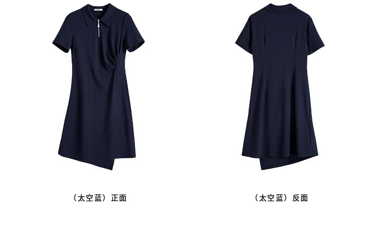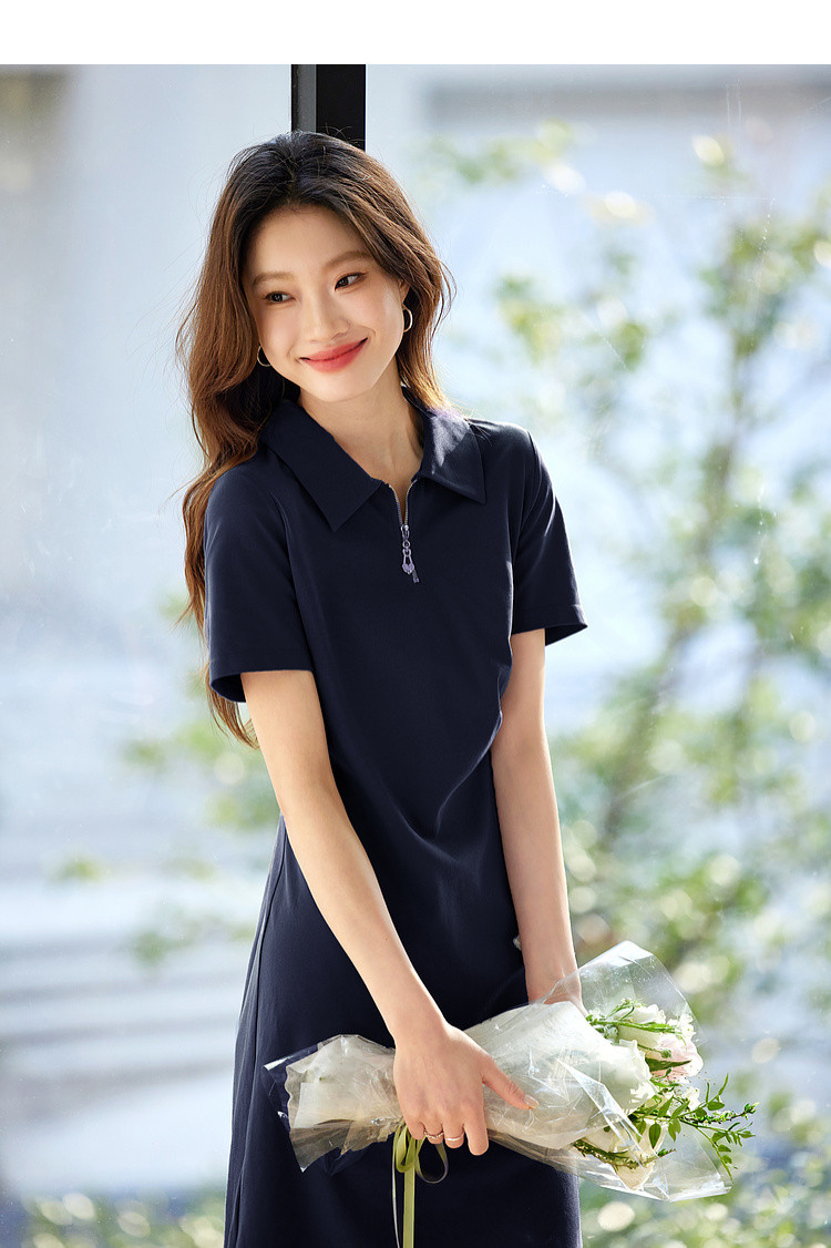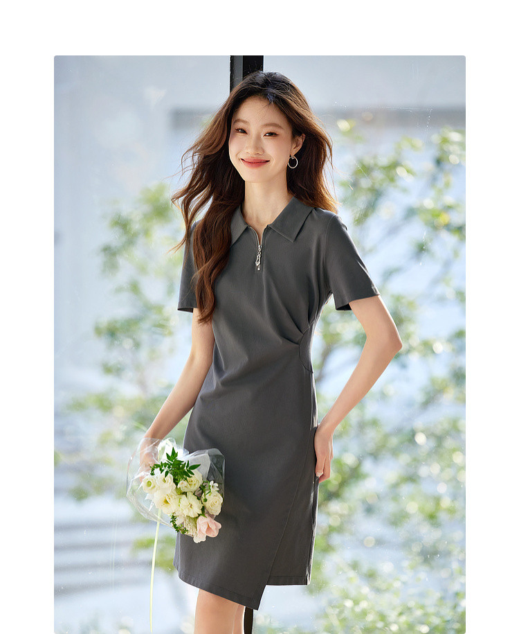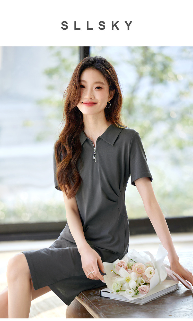 【周四狂欢价】熙世界透气拉链POLO裙女25夏新款直筒短袖抽褶显瘦不规则连衣裙子