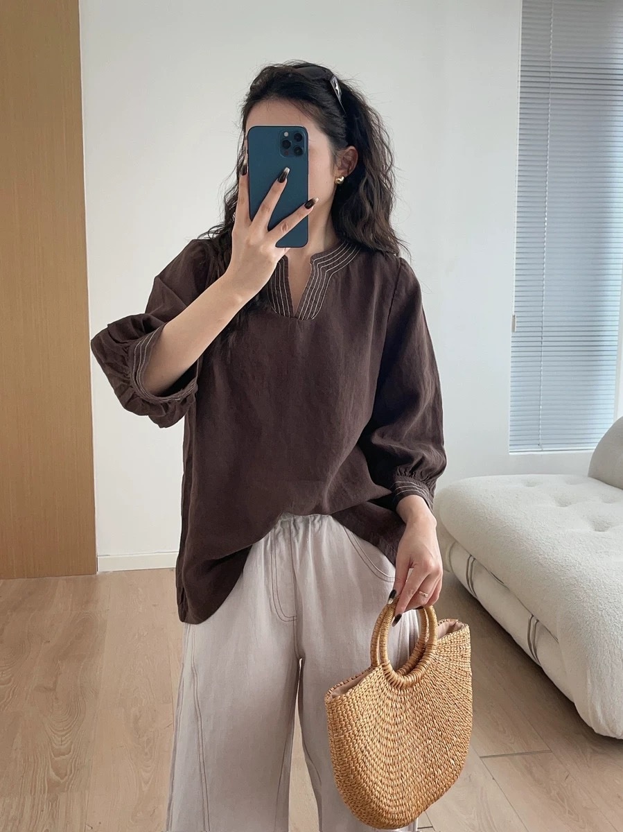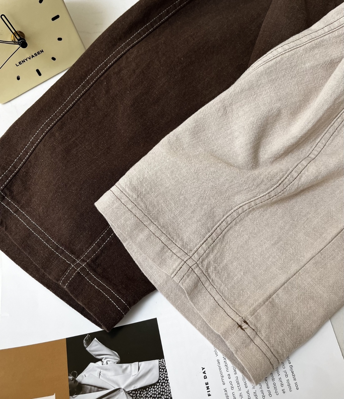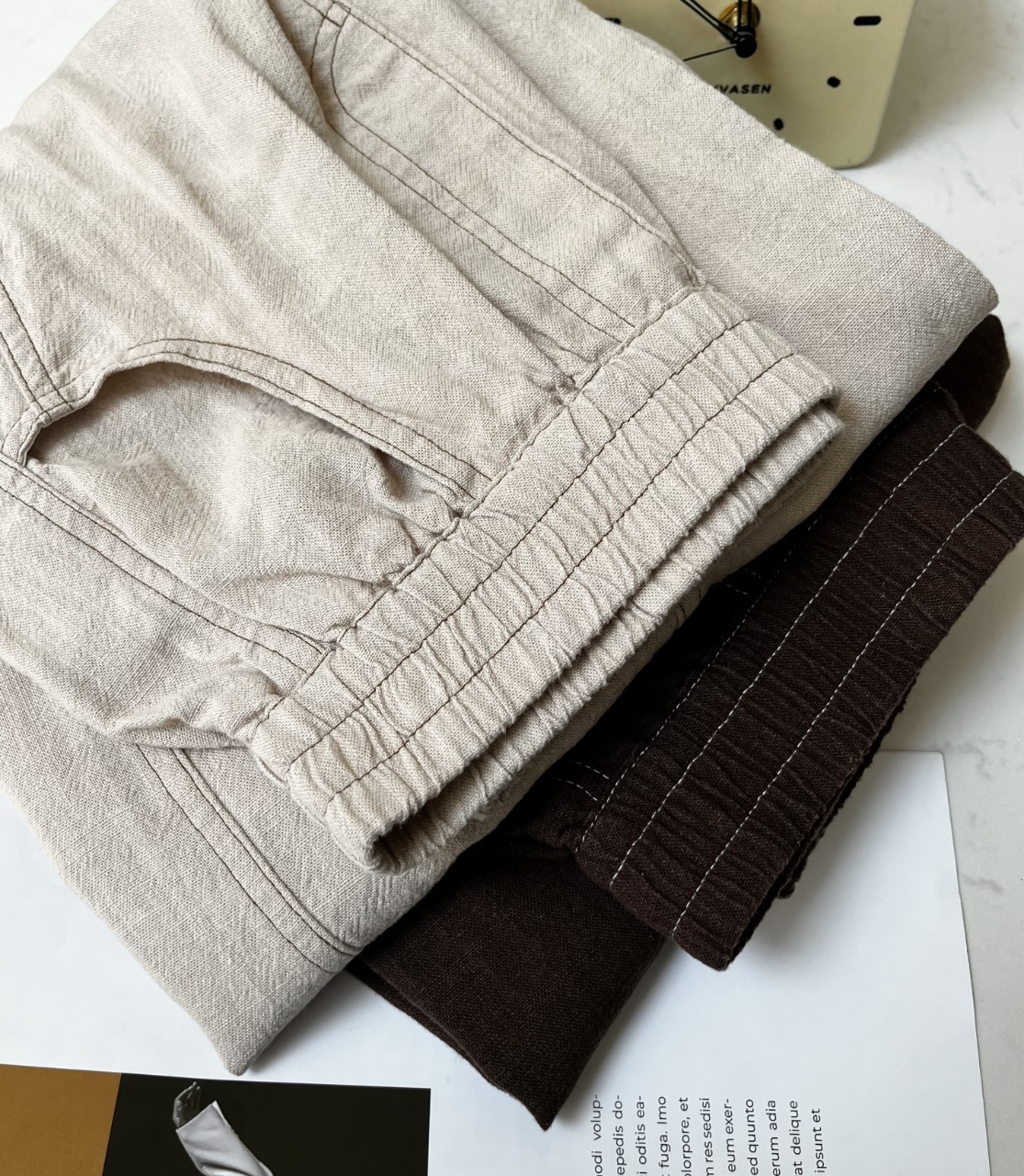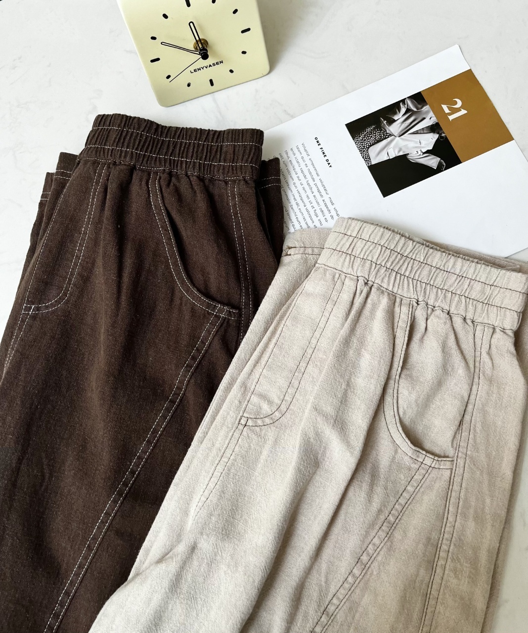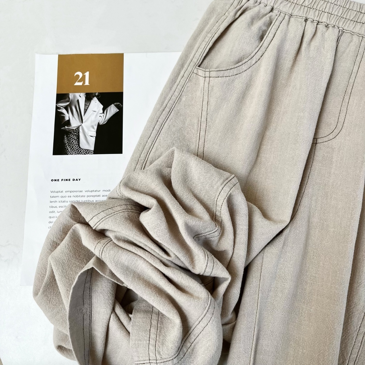 爆款3-7天发货!cosAcosB天丝苎麻撞色线松紧弯刀阔腿裤2124