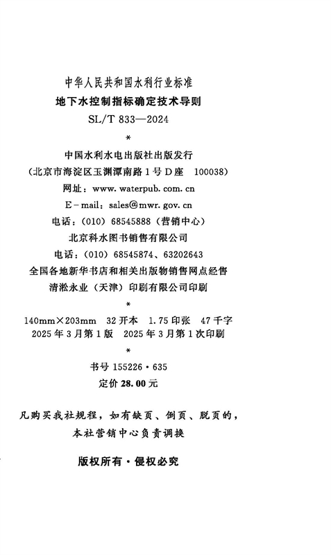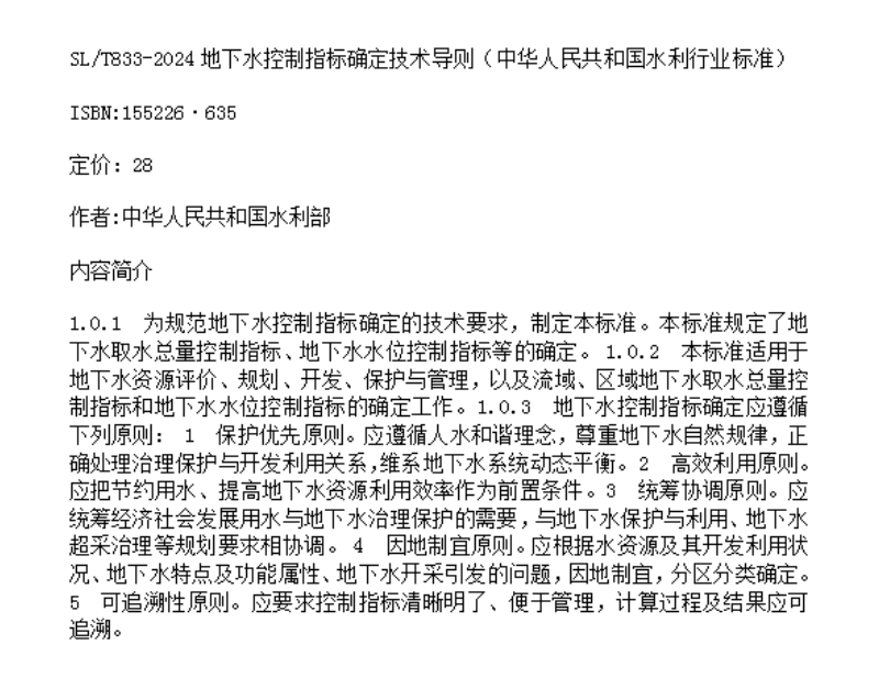SL/T833-2024地下水控制指标确定技术导则(中华人民共和国水利行业标准)