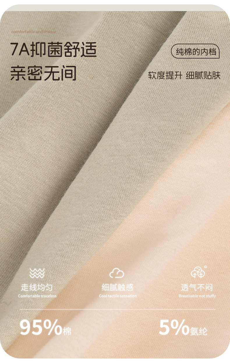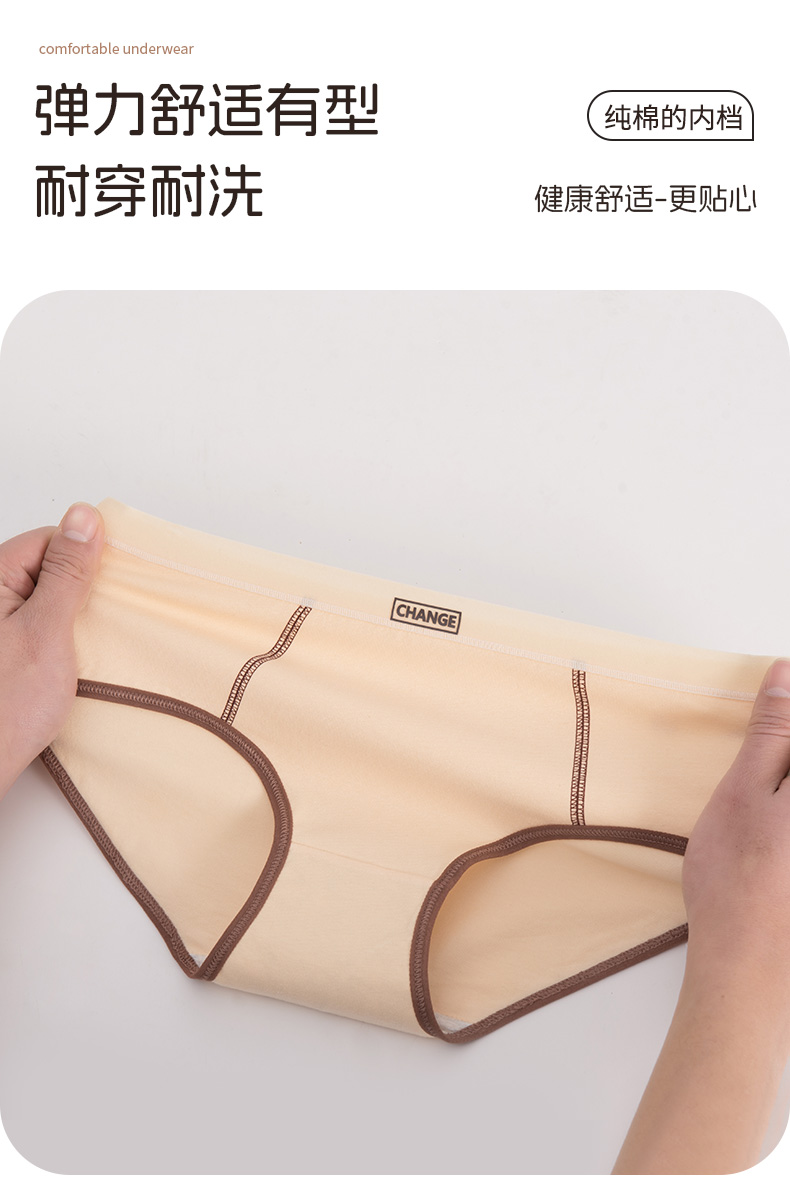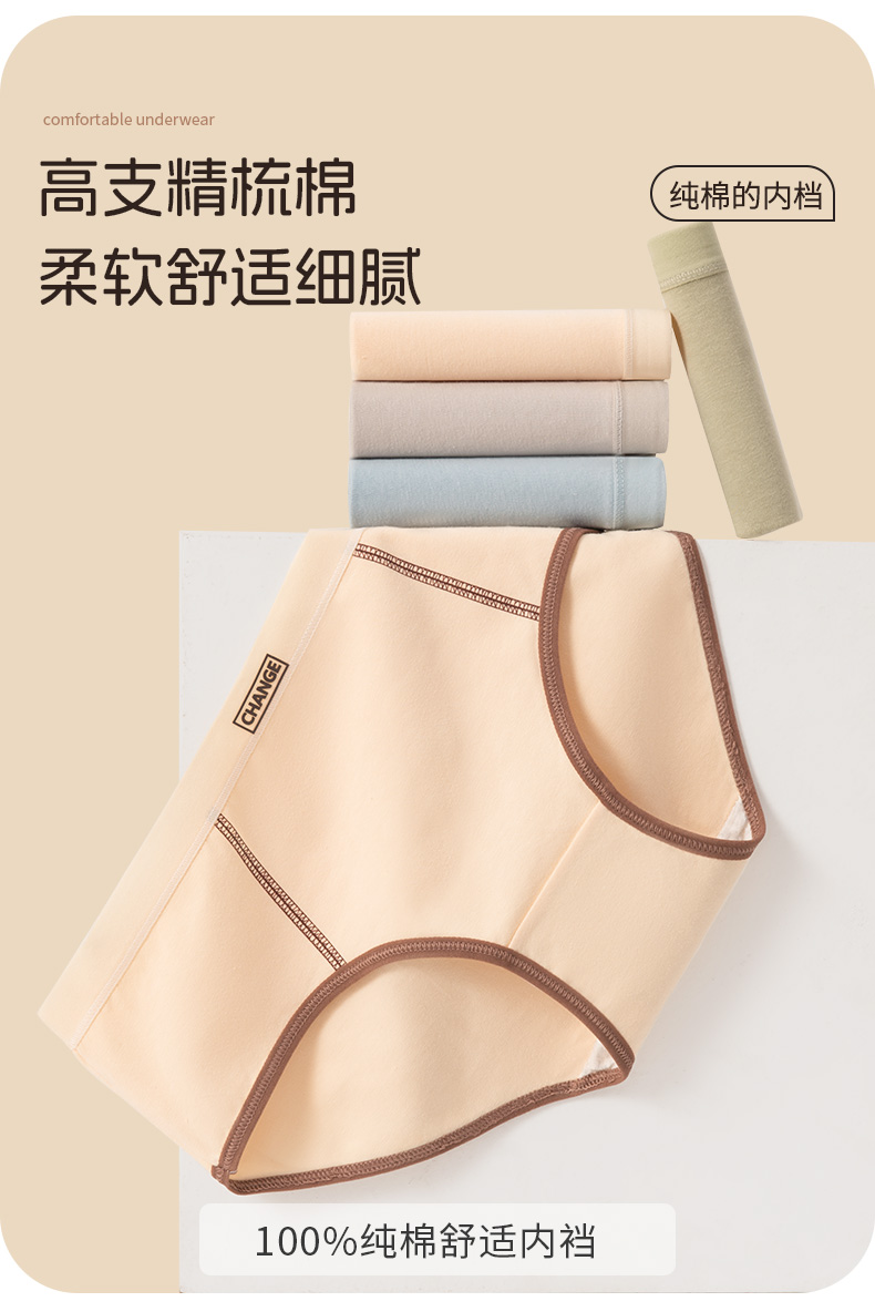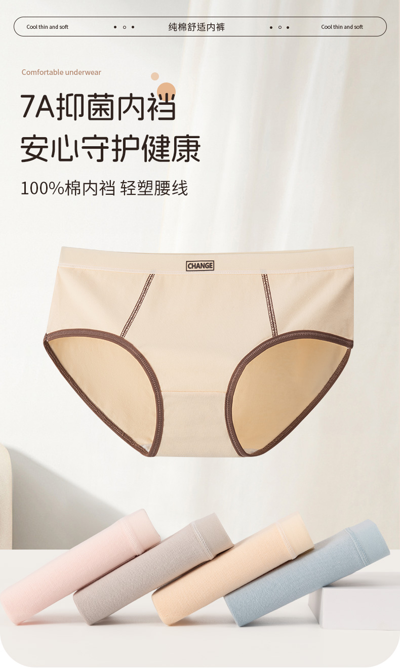 洁丽雅7条装中腰纯棉女士内裤甜美撞色双层抑菌裆舒适亲肤三角裤