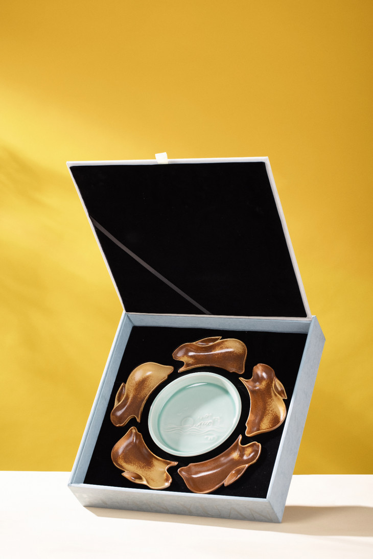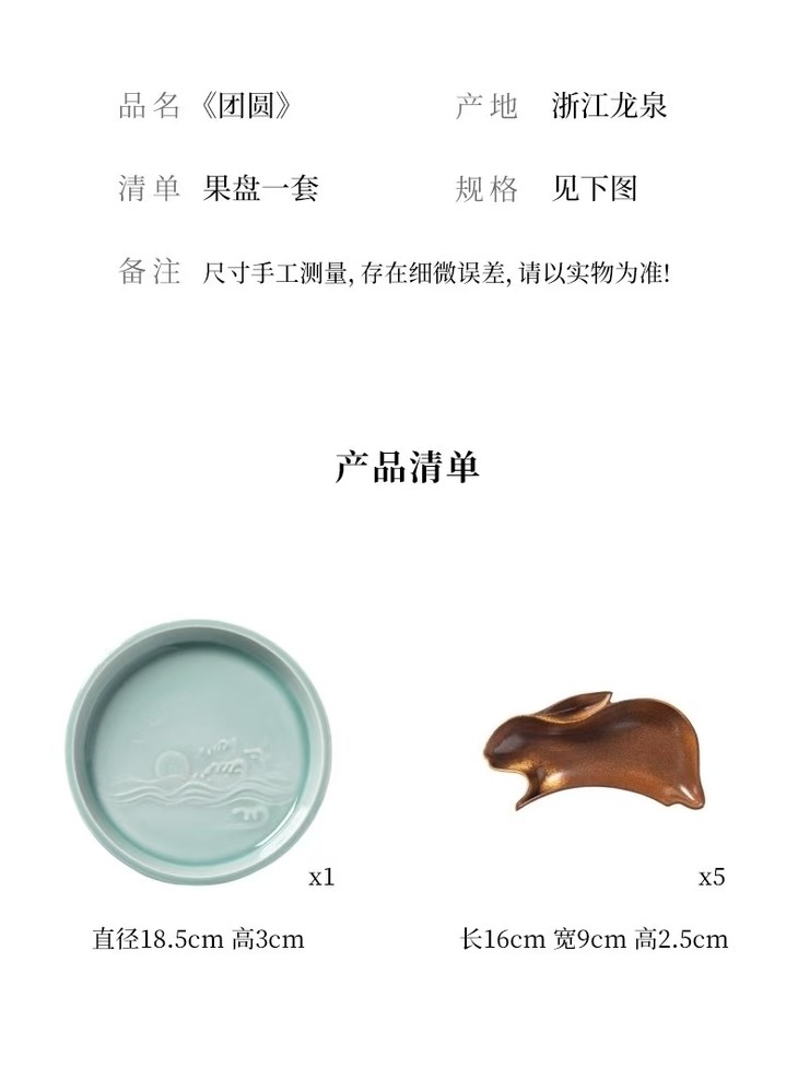 中秋特惠 | 龙泉青瓷《团圆》五子登月茶盘套装