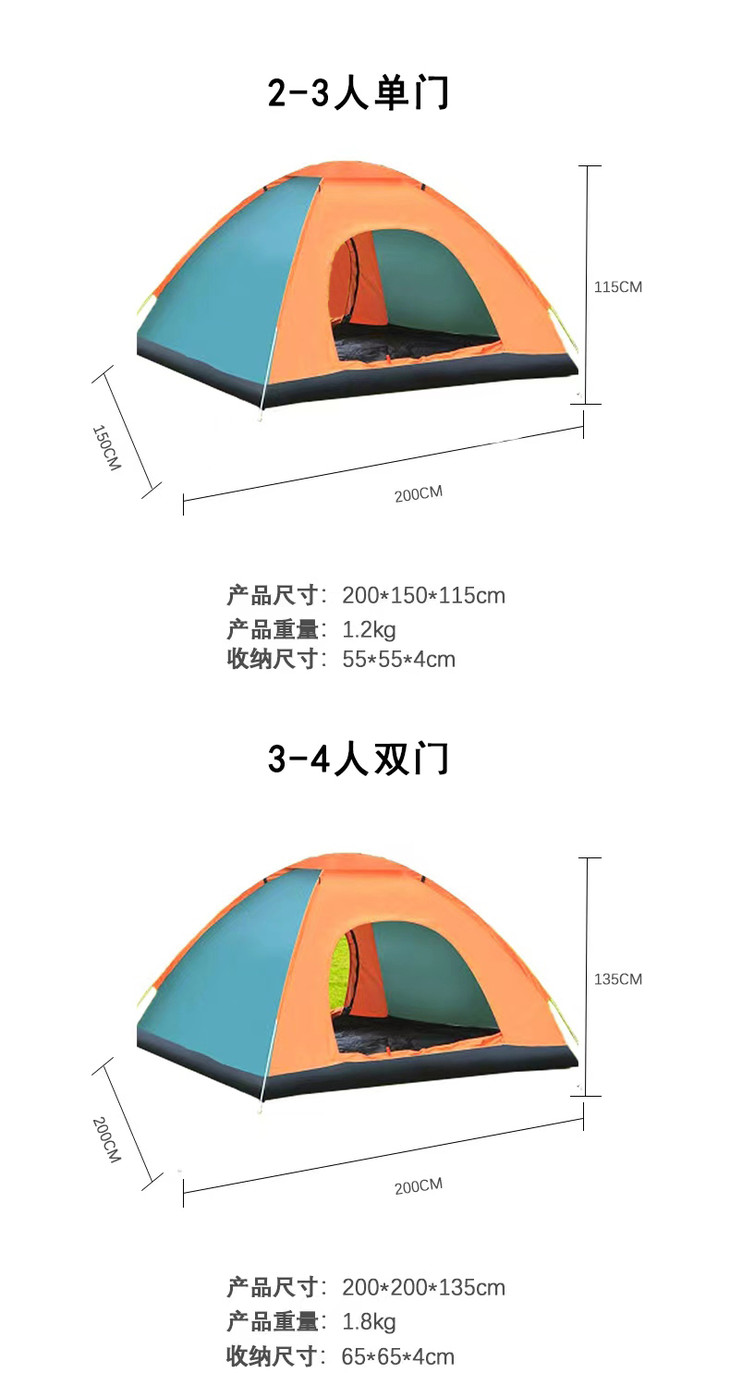 尺寸:200*150*115cm+防潮垫、200*200*135cm+防潮垫