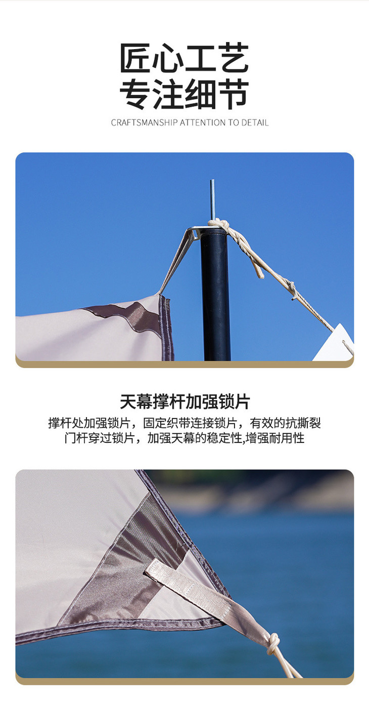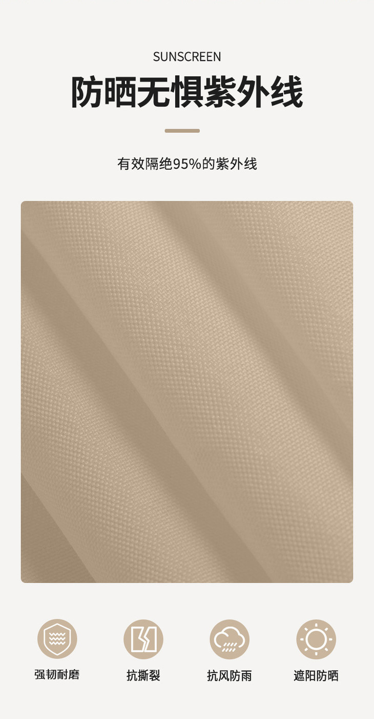 材质:支架材质:玻璃纤维杆,布料材质:170T涤纶银胶防晒涂层,门窗面料:高密度网纱