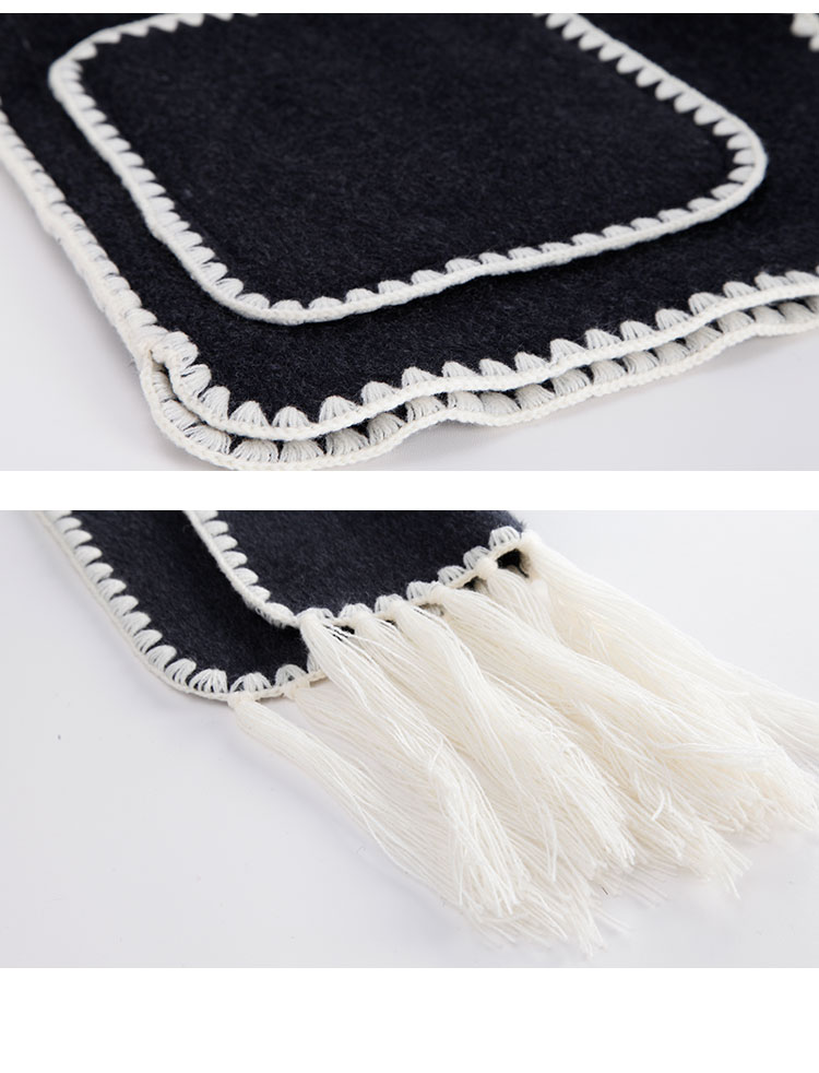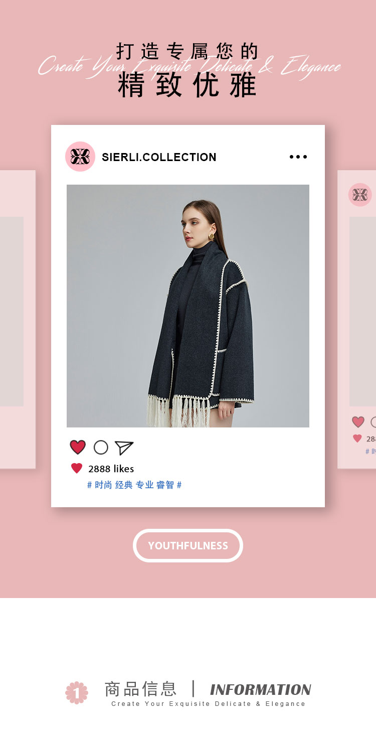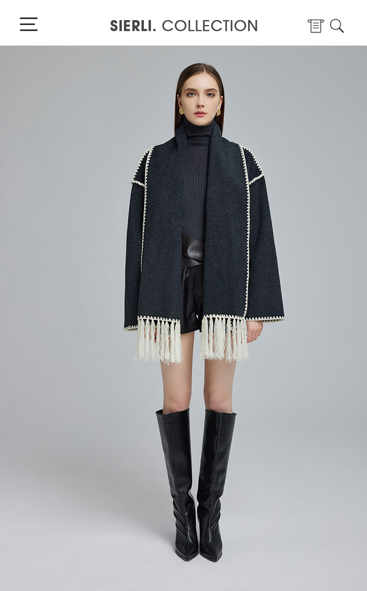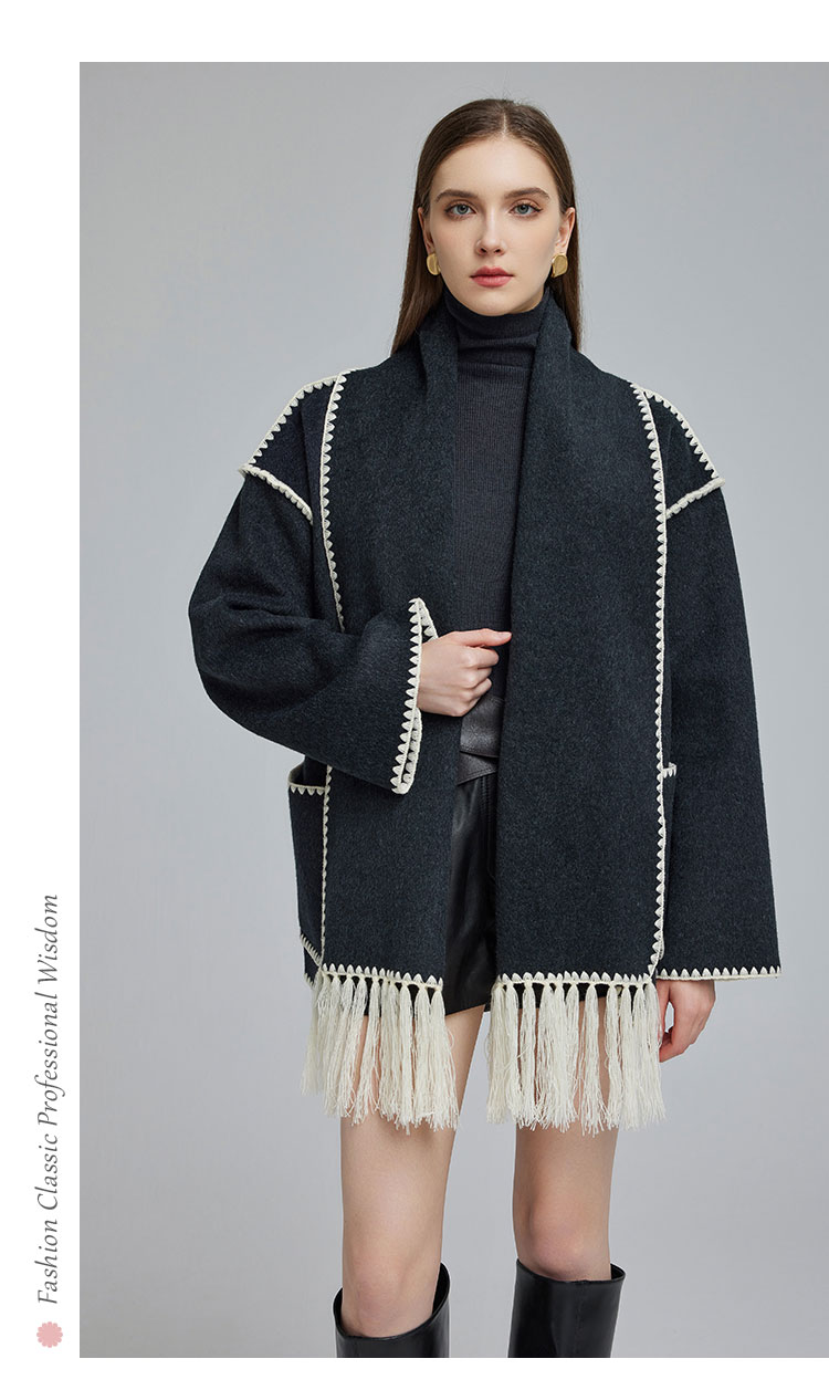 NH937斯尔丽2023冬上新围巾款手工立体绣边撞色宽松显瘦既视感双面大衣