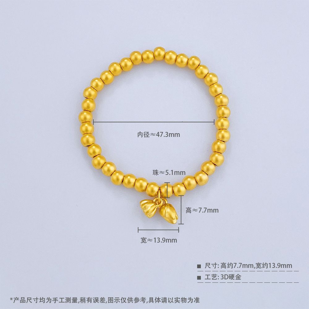 【限时克减150元】足金 #两世欢 3D硬金莲蓬莲蕊两世欢手串圆珠(约5.1mm、周长约17-18cm)手串(V3DSC00131-2)补差价)预售产品下单后不退款不退货不换货不补差价