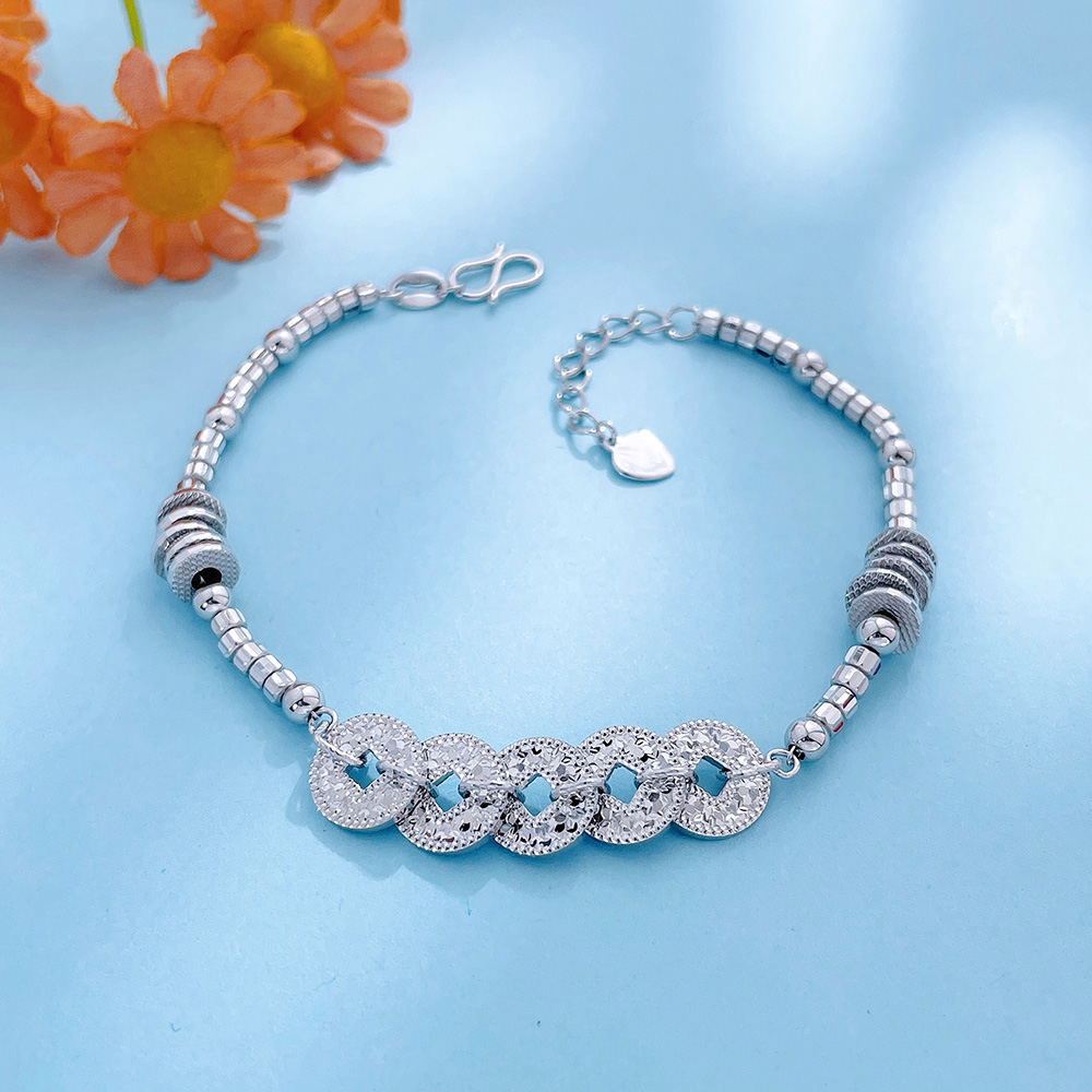 【限时8.8折】【线上铂金馆】PT950 #碎碎冰 #招财纳福 【国际铂金协会】铂金镂空碎碎冰招财五帝币调节手链(内里线为铂金链)(BSL00255)预售产品下单后不退款不退货不换货不补差价)