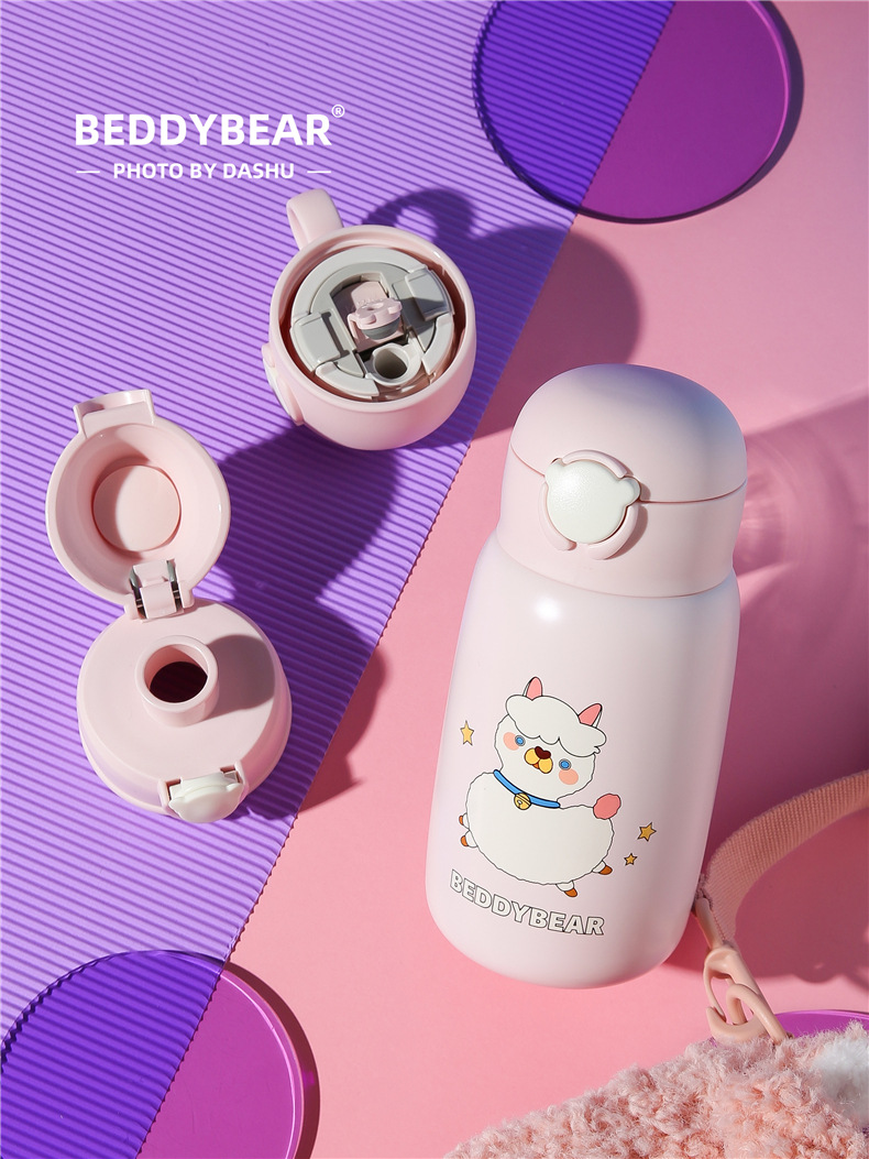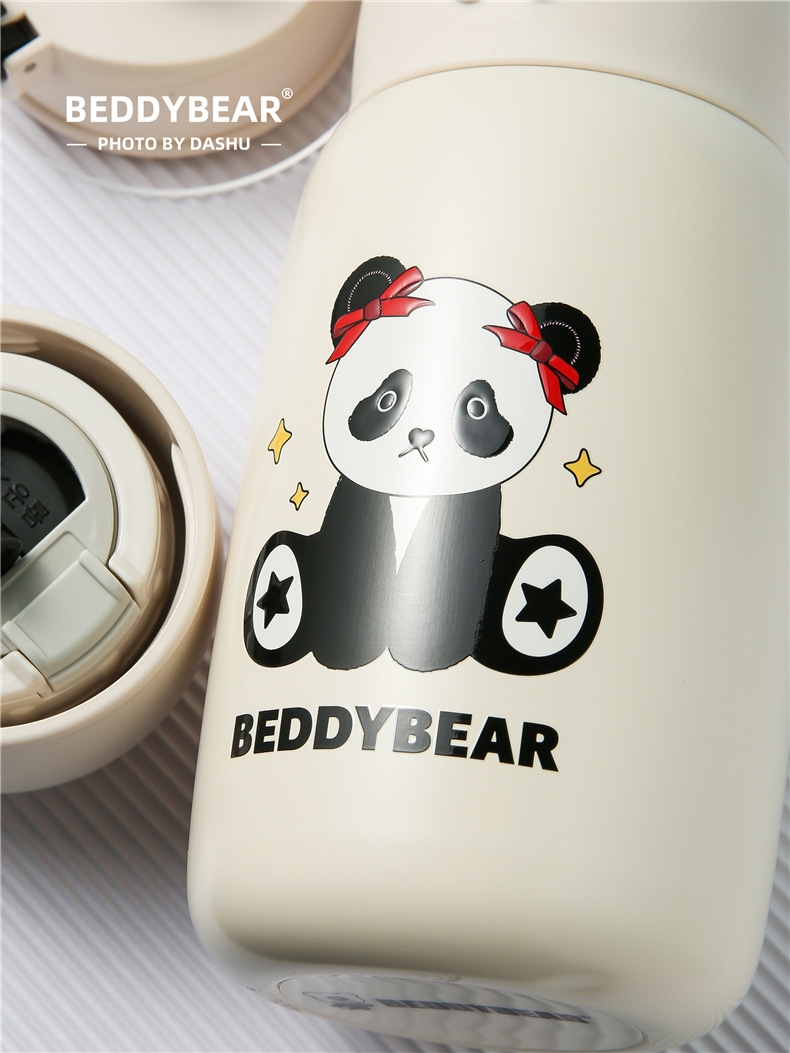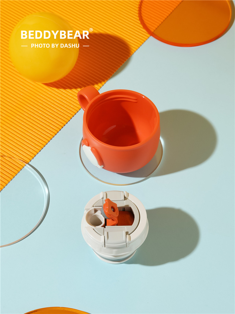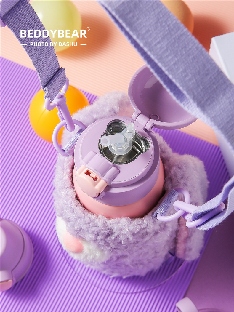杯具熊熊抱系列儿童保温杯游泳鸭可爱毛绒杯套三盖吸管水杯