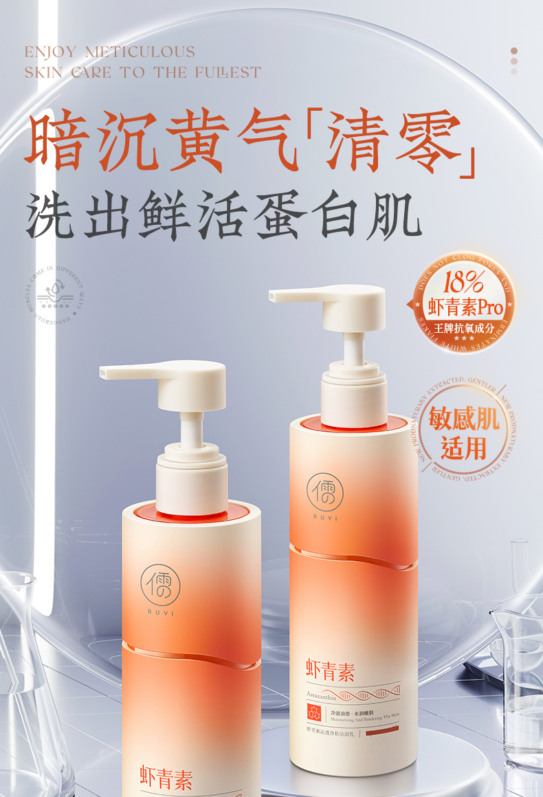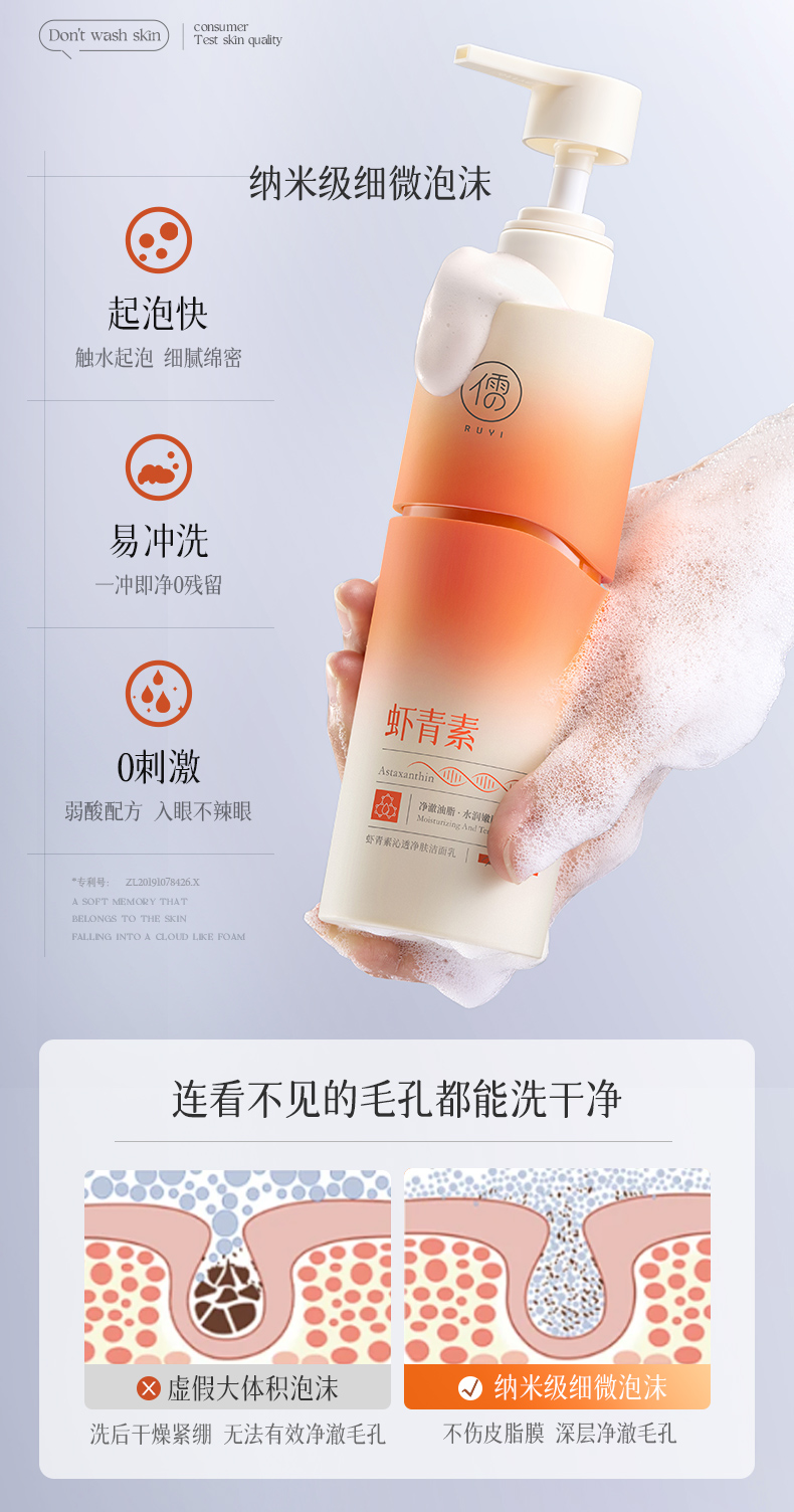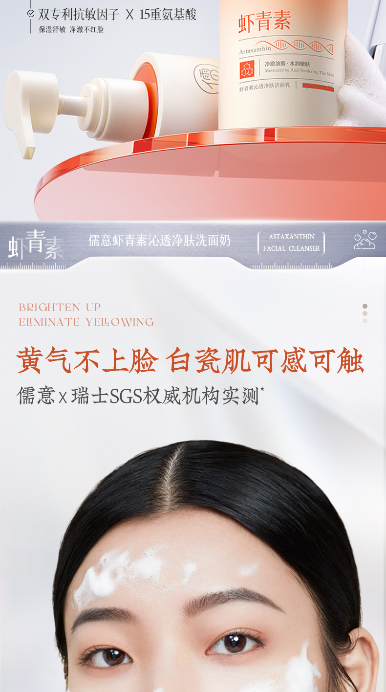 儒意虾青素沁透净肤洁面乳200g 美白洗面奶控油祛痘深层清洁收缩毛洁面乳|儒意官方商城