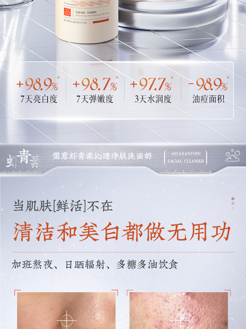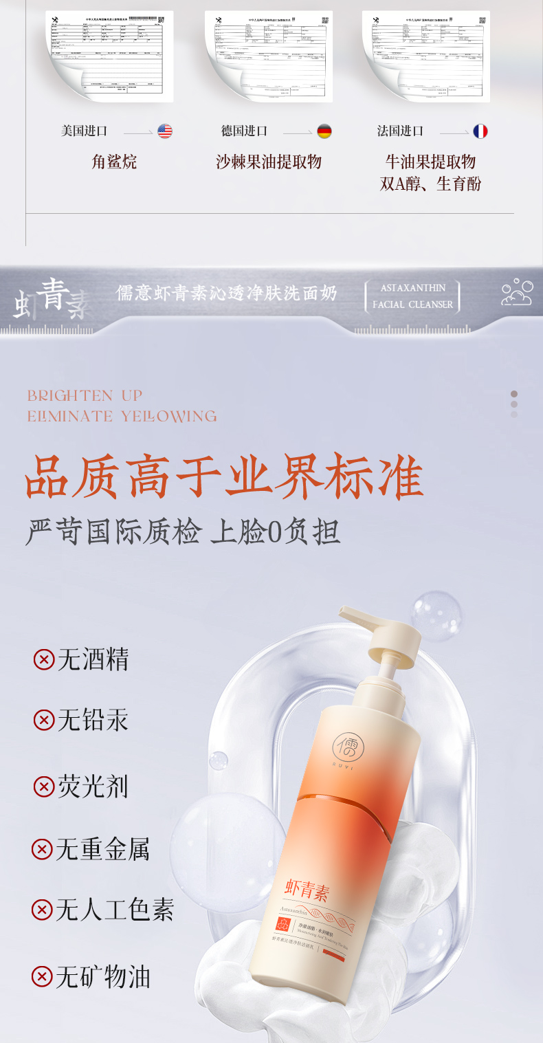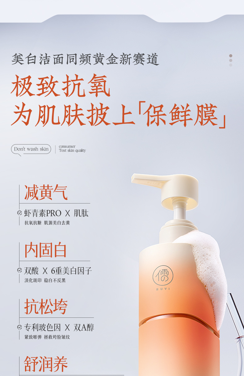 儒意虾青素沁透净肤洁面乳200g 美白洗面奶控油祛痘深层清洁收缩毛洁面乳|儒意官方商城