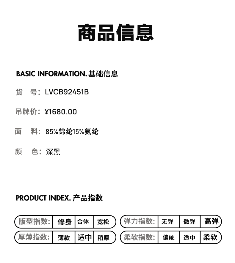 | 版型: 标准 | 后开衩方式: 无开衩 |
