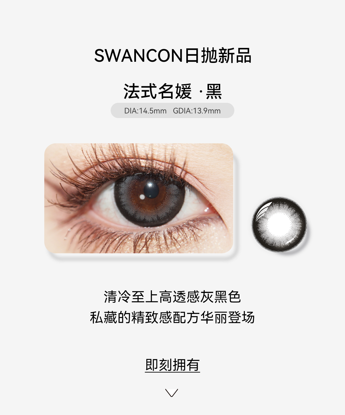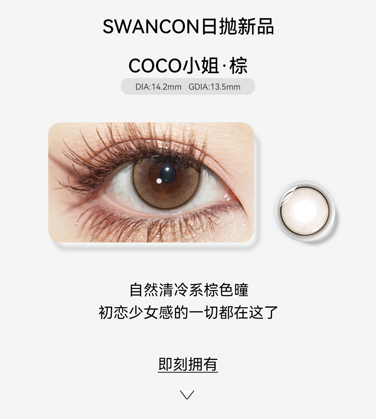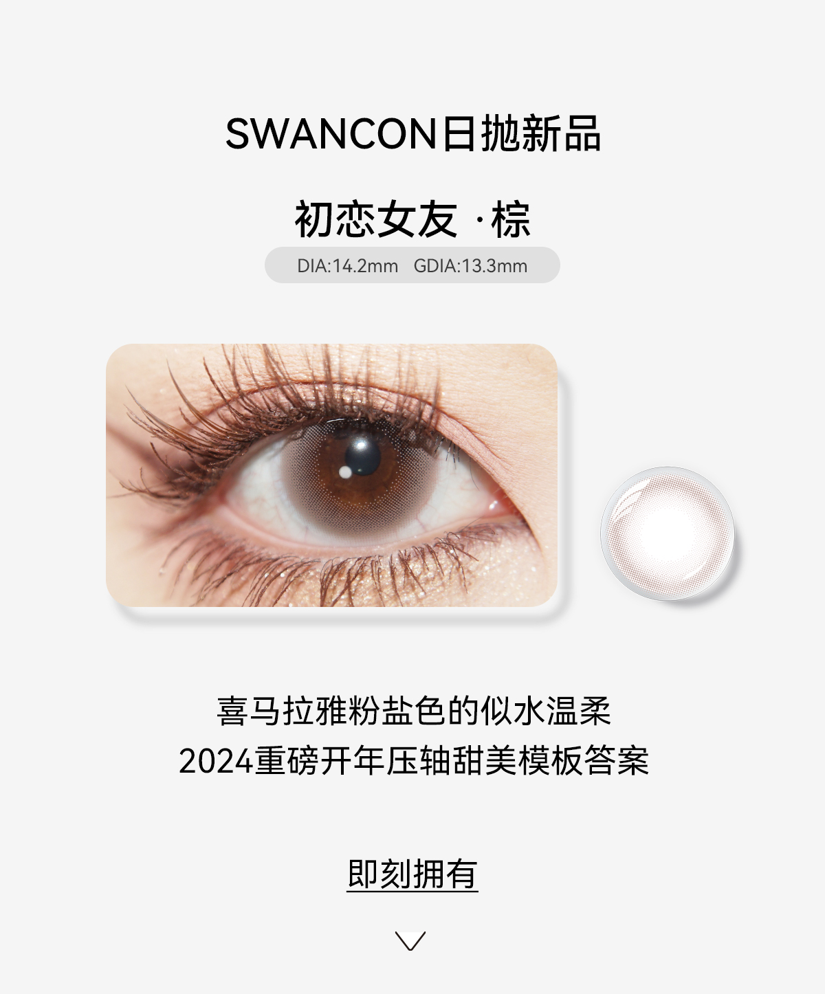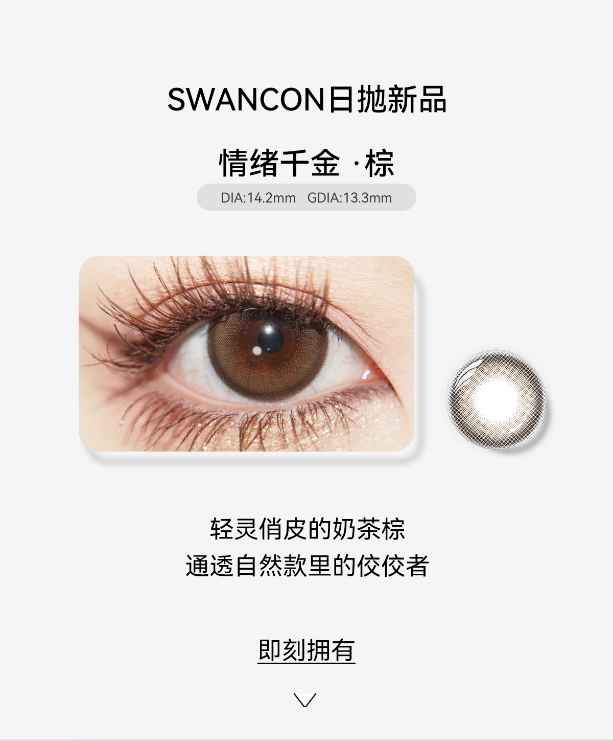 【swancon日抛】美瞳日抛10片自然款素颜棕色小直径黑天鹅一次性隐形眼镜