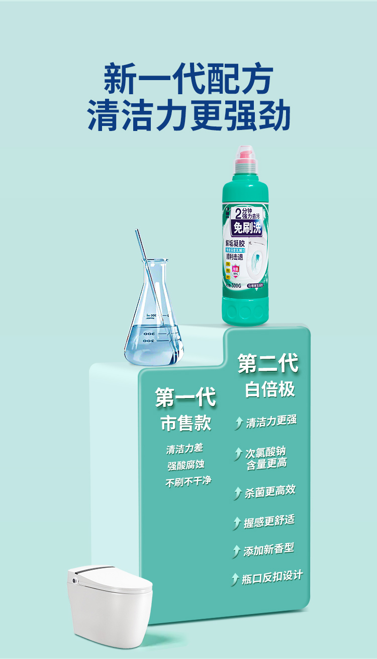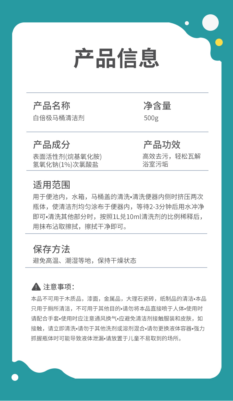 【品牌优选】【马桶污渍免刷洗】白倍极魔瓶洁厕灵 180g/瓶 白倍极马桶解垢凝胶500g/瓶