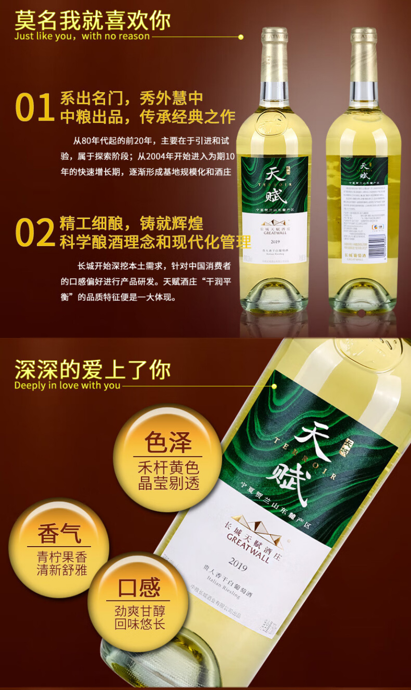 【整箱6瓶】长城天赋酒庄贵人香干白葡萄酒 750ML-礼盒装