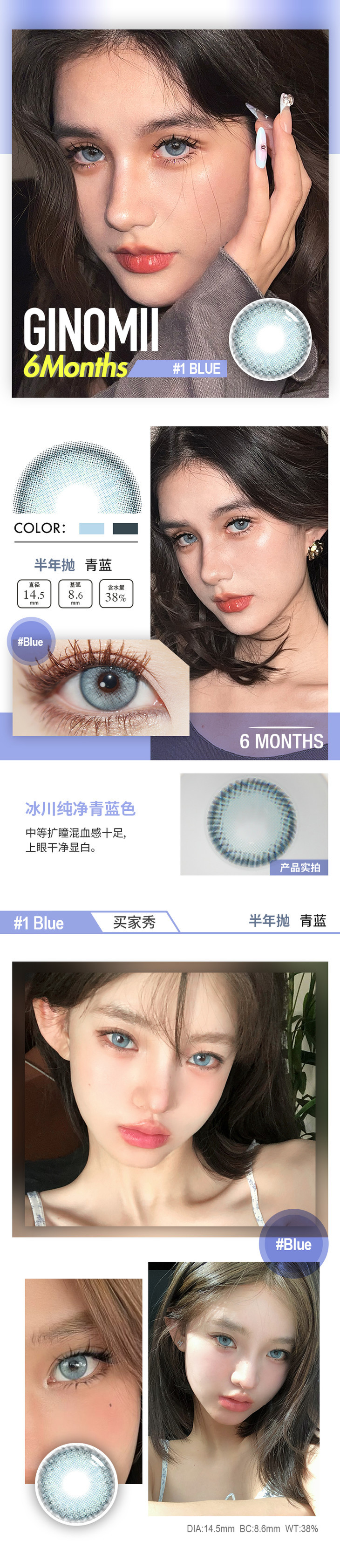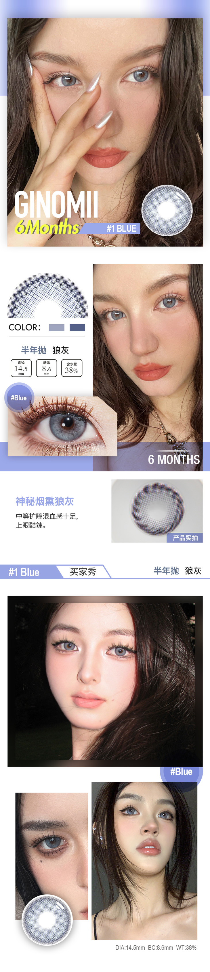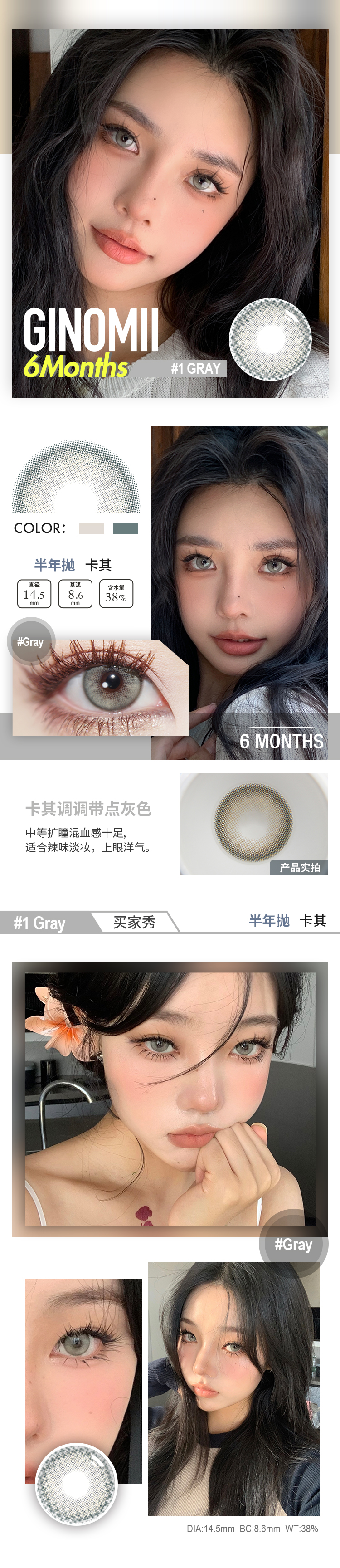 GINOMII 半年抛 青蓝/狼灰/卡其(棕蓝灰14.5 最高800度)