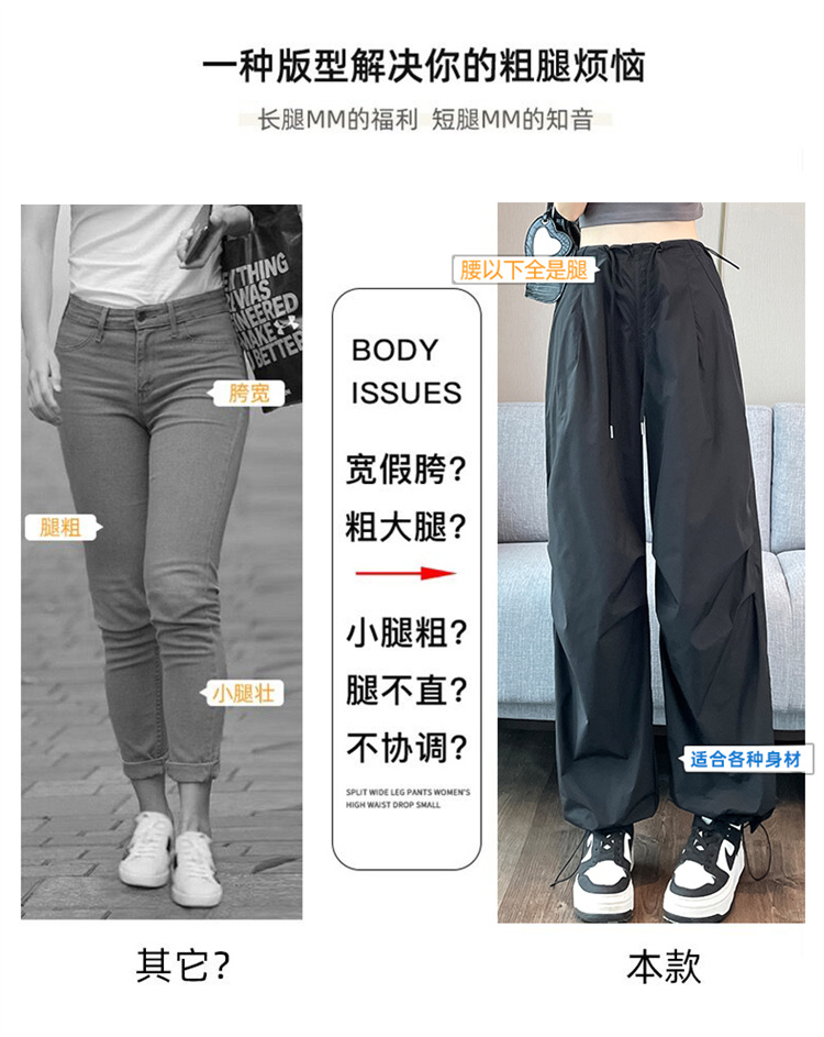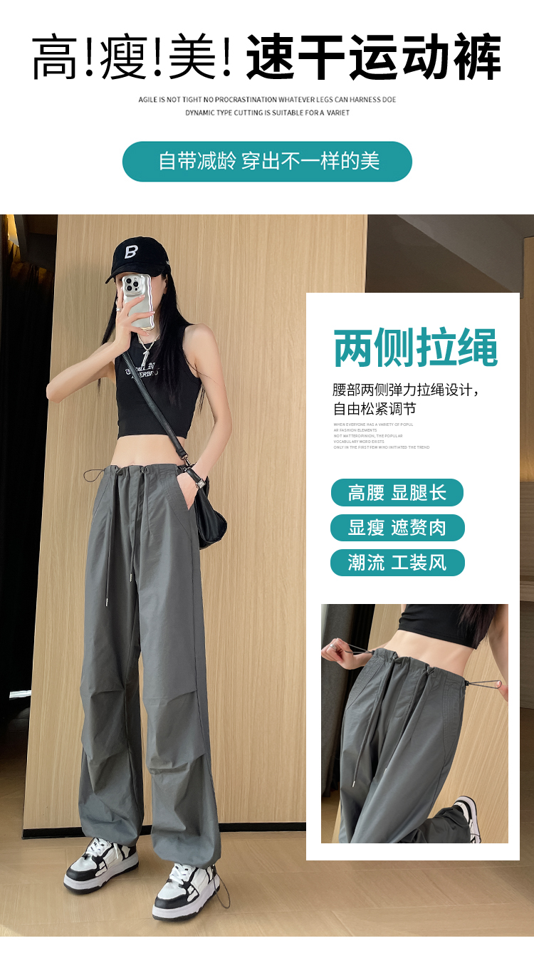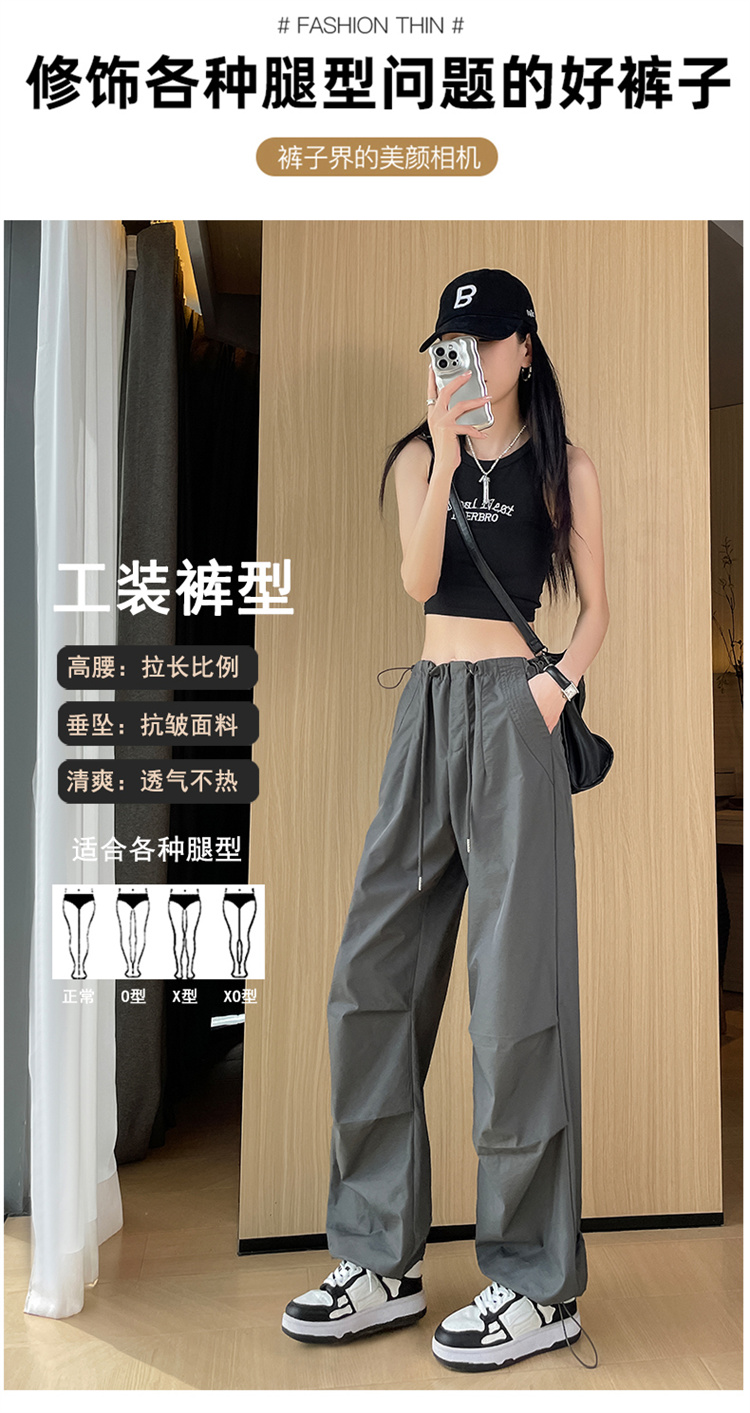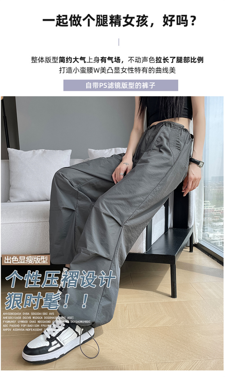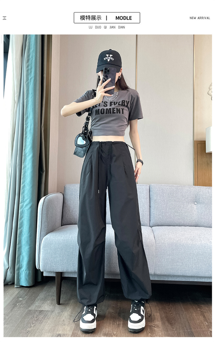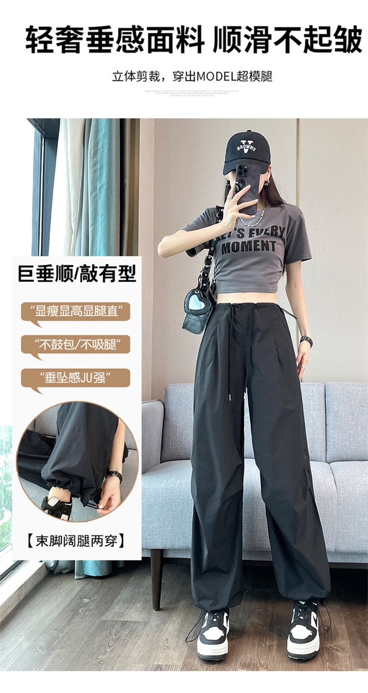 赤兔嗨购女士束脚阔腿高腰休闲裤显瘦显高运动工装裤2024年新款