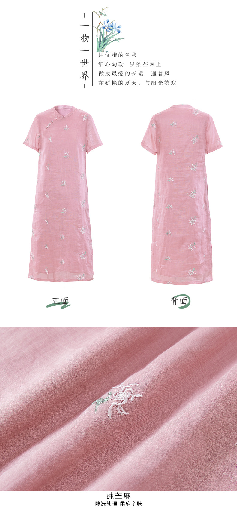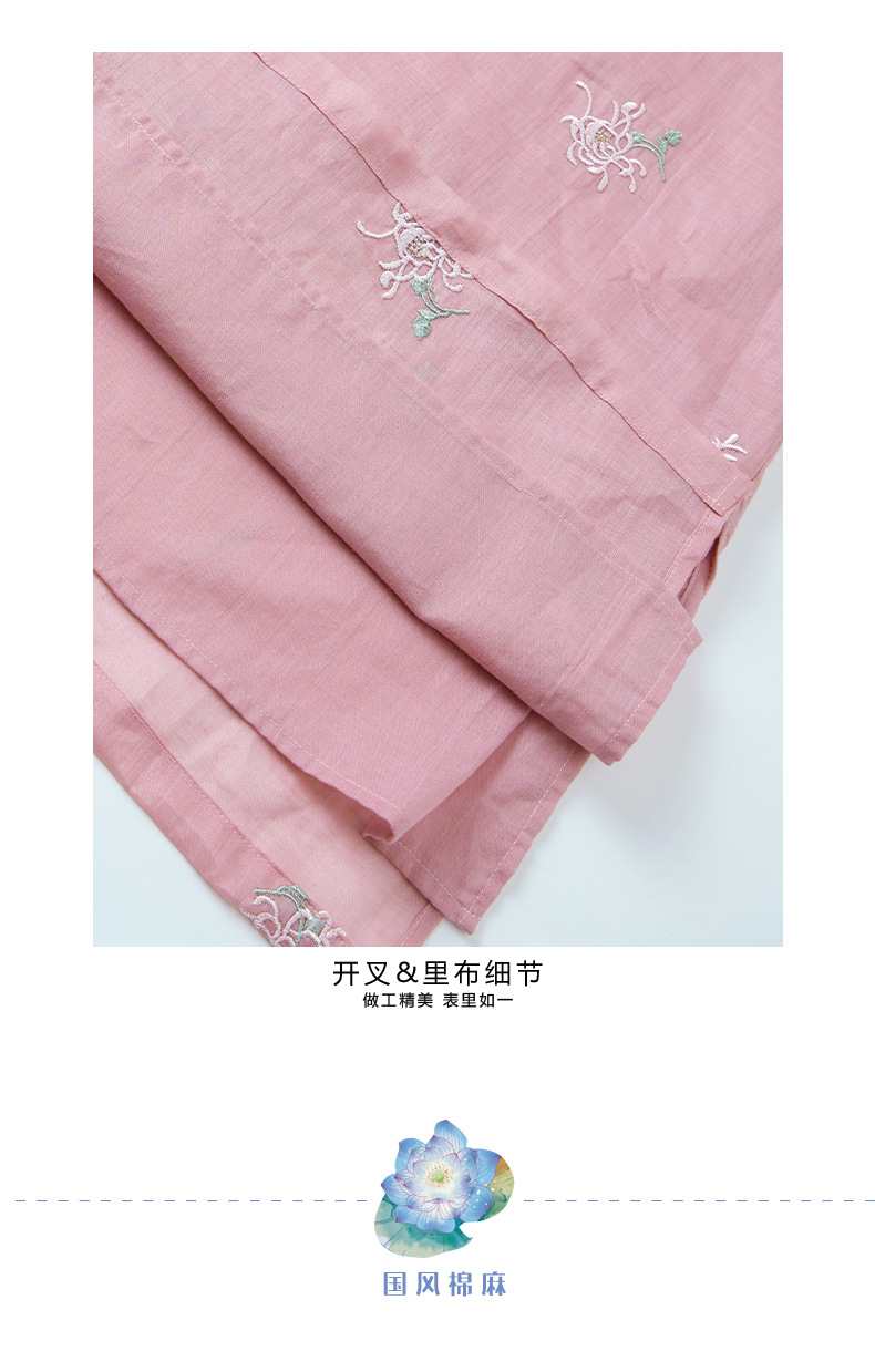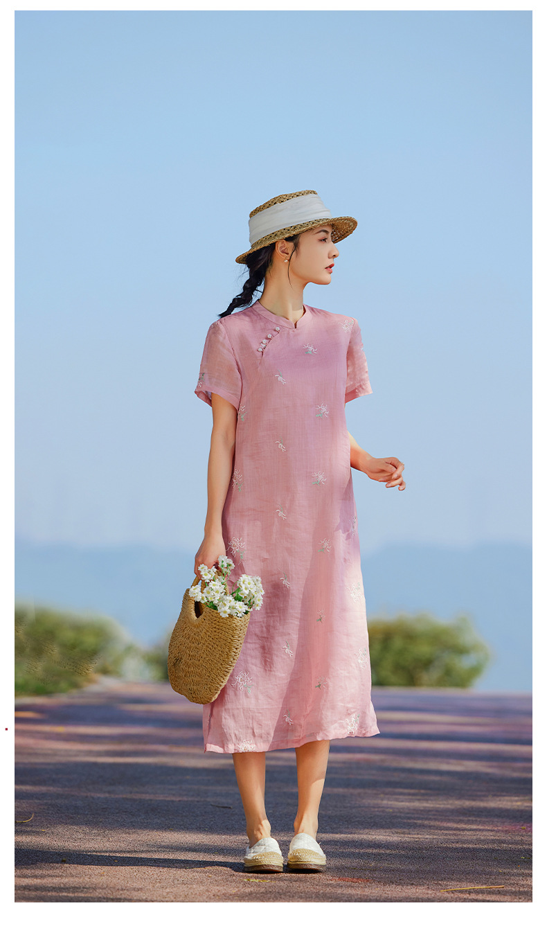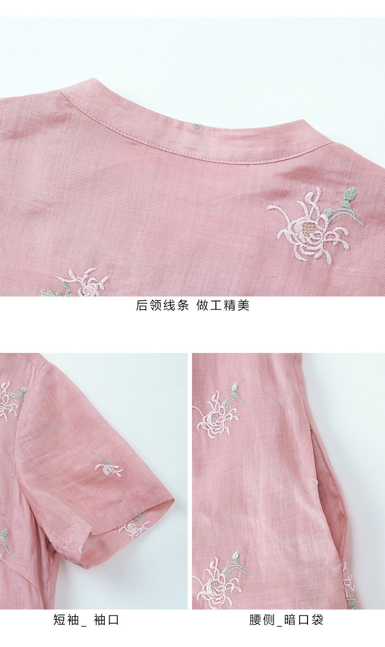 苎麻刺绣改良旗袍,文艺短袖国风复古连衣裙YM-S440