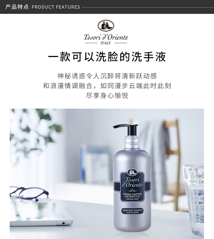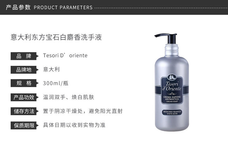 【保税仓】意大利Tesori d'Oriente东方宝石白麝香洗手液300ml