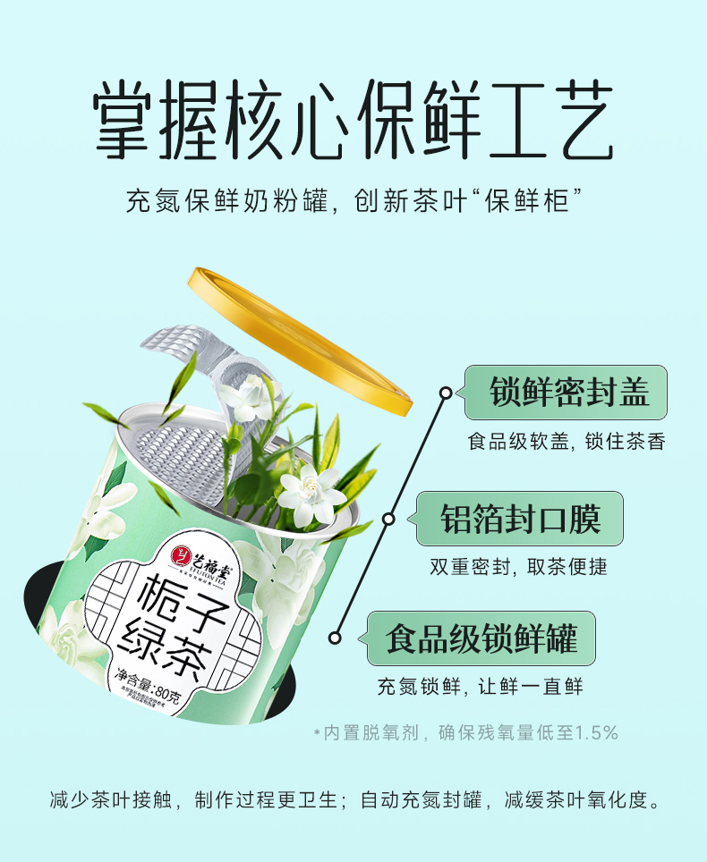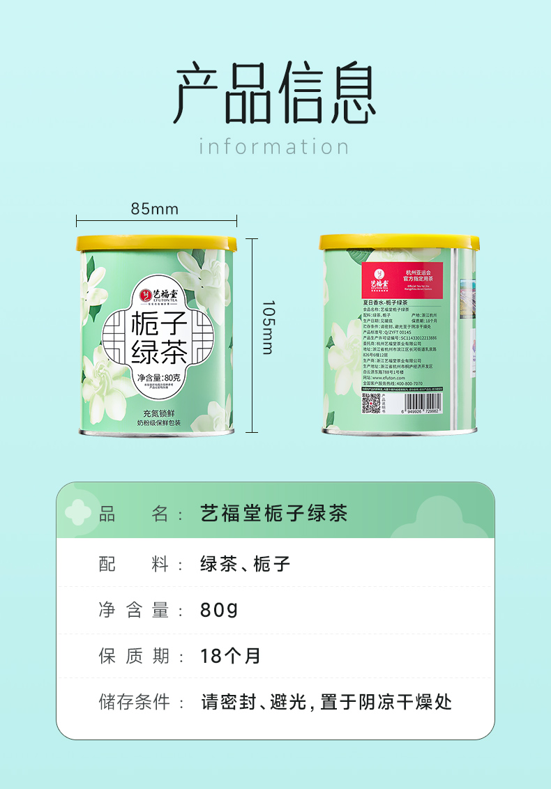 艺福堂精选栀子绿茶80g/罐(氮气罐)