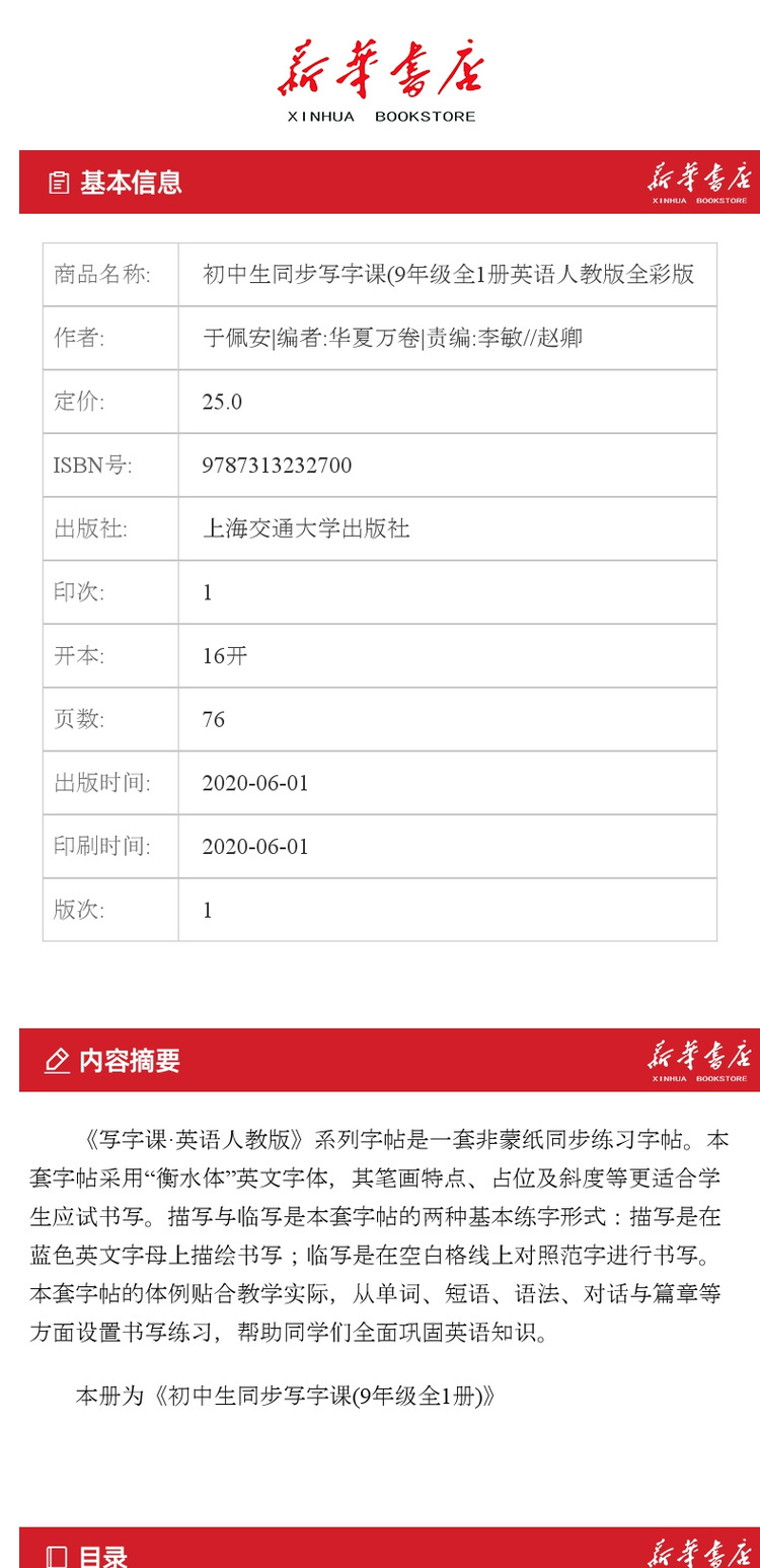 【新华书店旗舰店官网】正版 写字课衡水体九年级全一册英语人教版于佩安书9年级上下册全彩英语词汇语法短语临摹描红钢笔字帖