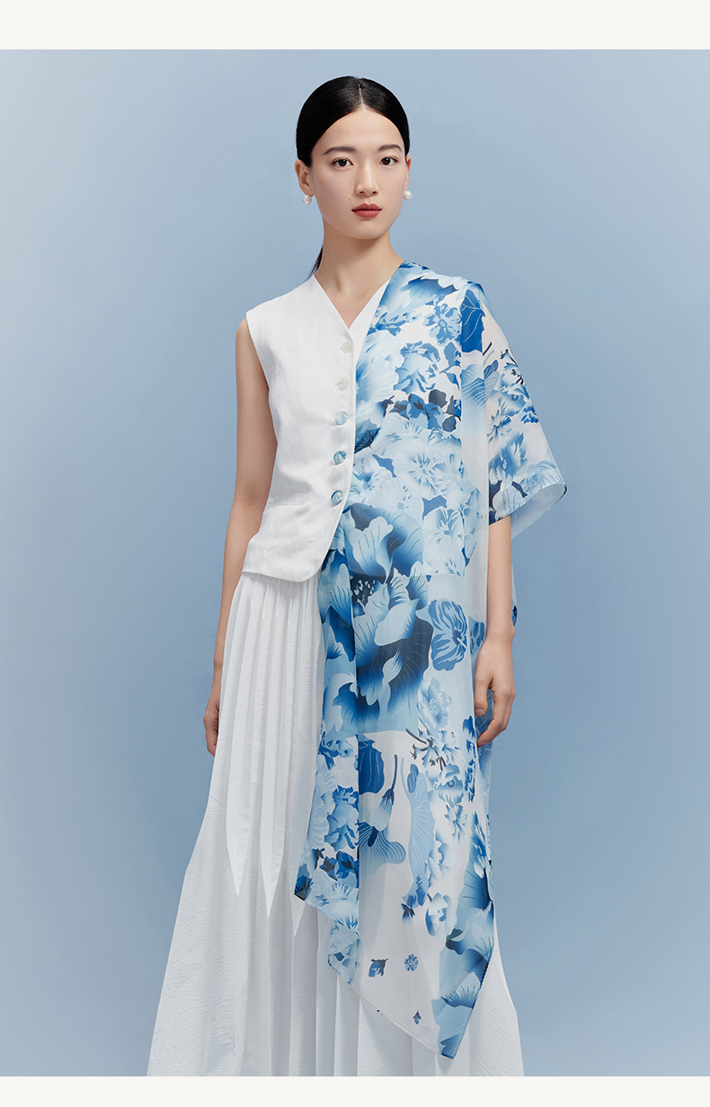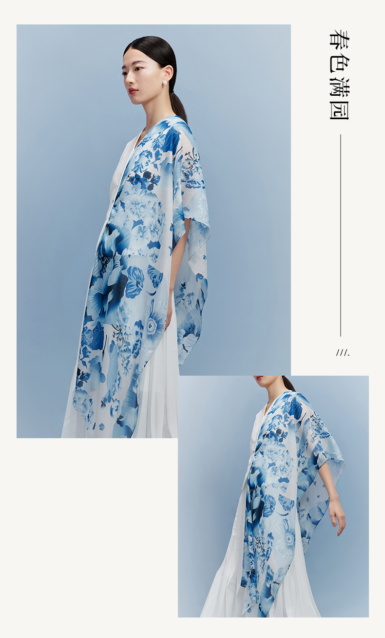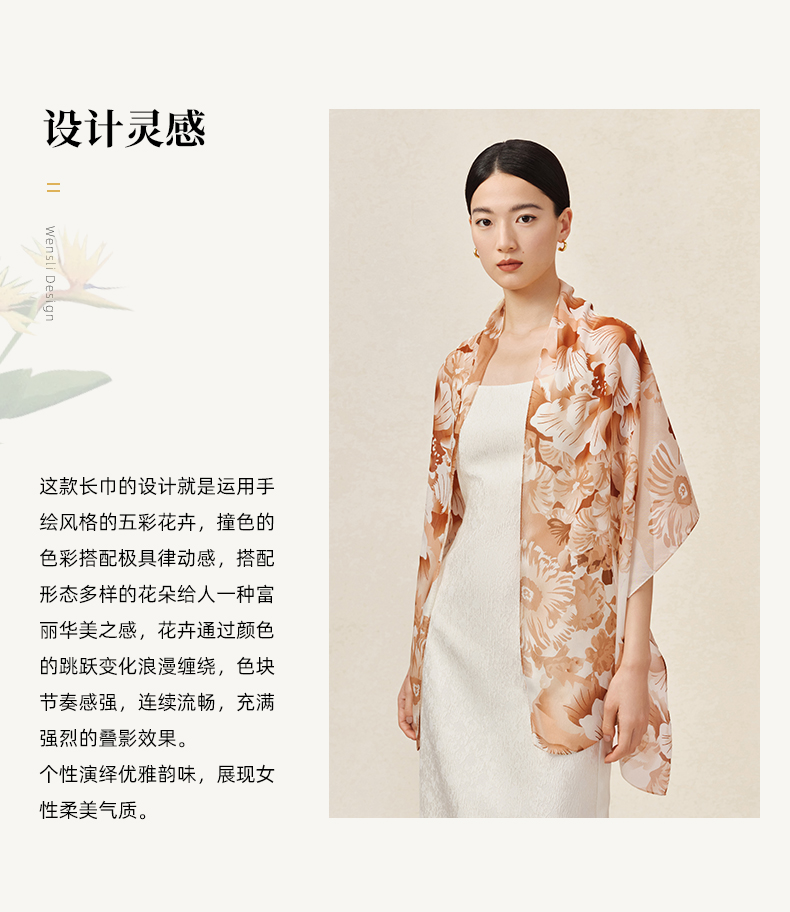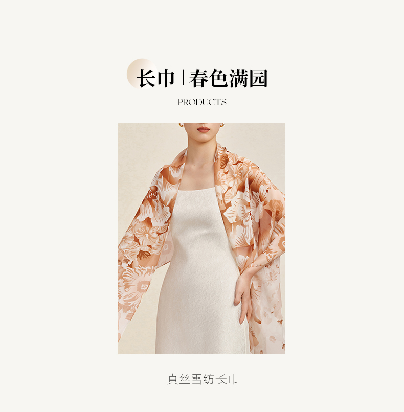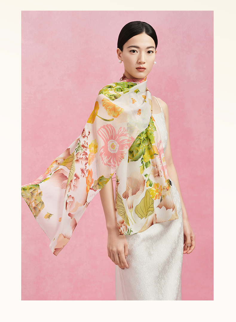 万事利“春和景明”63厘米双面印花真丝中方巾