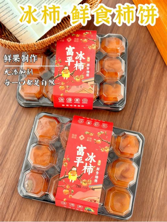 🥰咱们的流心冰柿 选用地标级产品——富平尖柿 富平尖柿,是柿树中的优良品种✨ 尖柿果肉厚实,纤维少汁水多 含糖量可达20%以上🥳 既有鲜柿子的柔软,又有柿饼的韧性 是用来做流心冰柿再合适不过的品种了 唯一的缺点可能就是💢 这种黄金比例的流心冰柿 只在每年固定短暂的时段内生产😫 传统柿饼可能会用库存果 但鲜食流心柿饼必须得是秋季新鲜采摘的果子❗️ 还得满足很多额外要求