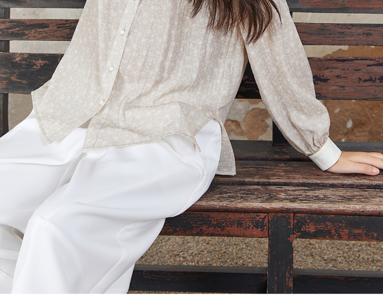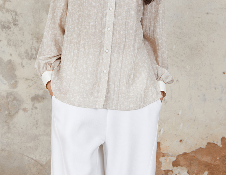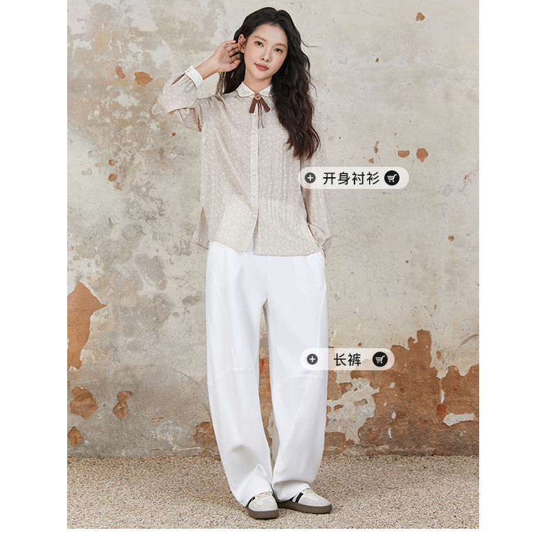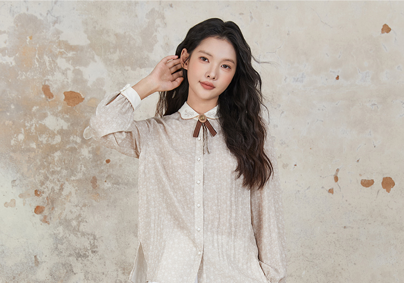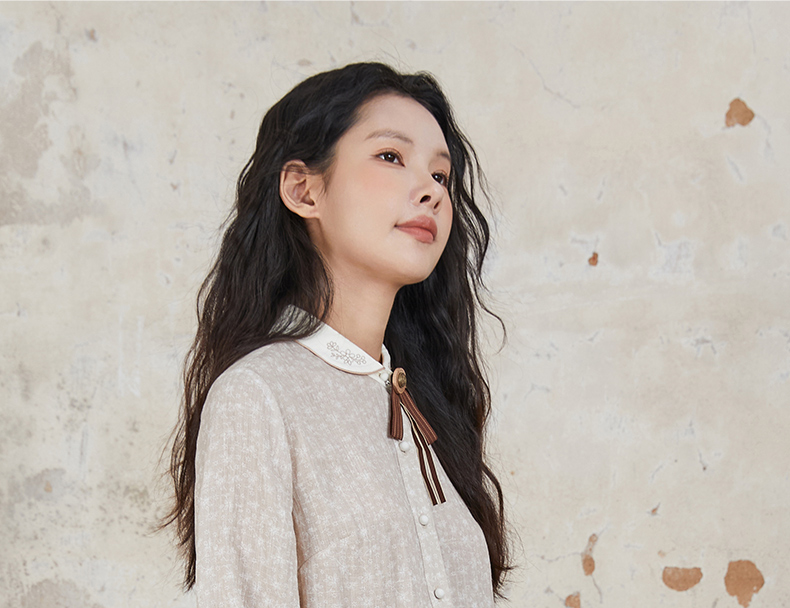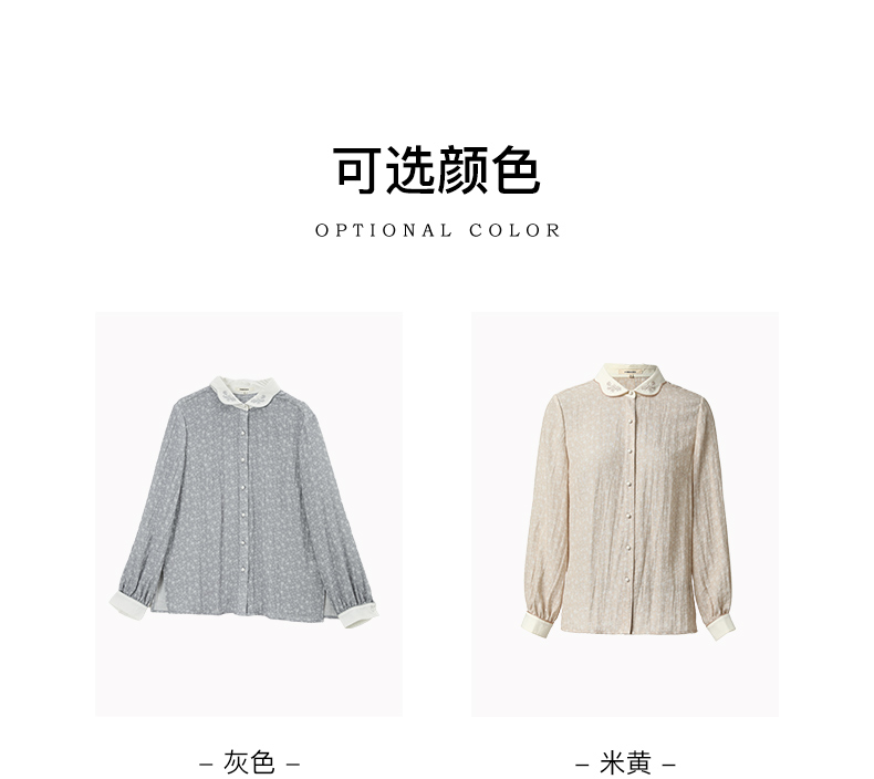 Famecoco原创文艺范衬衫娃娃领领口刺绣减龄春秋款FAB6BH025