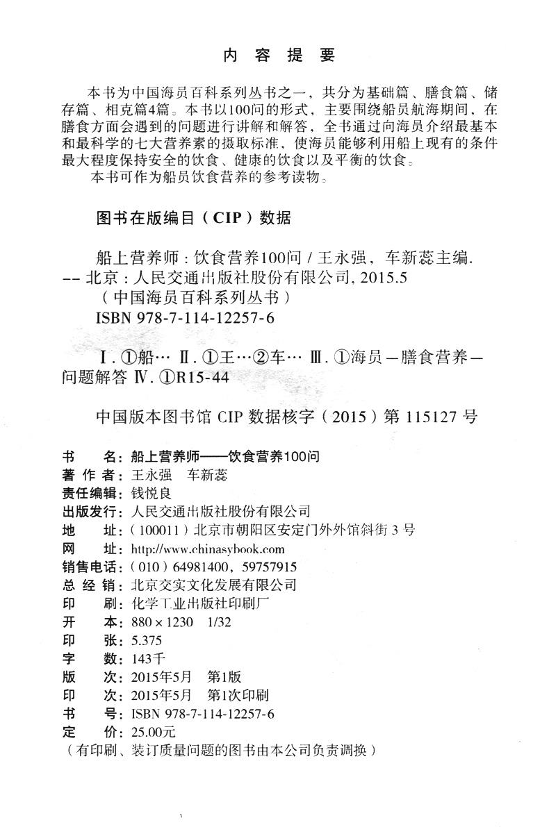 书名:船上营养师—饮食营养100问
