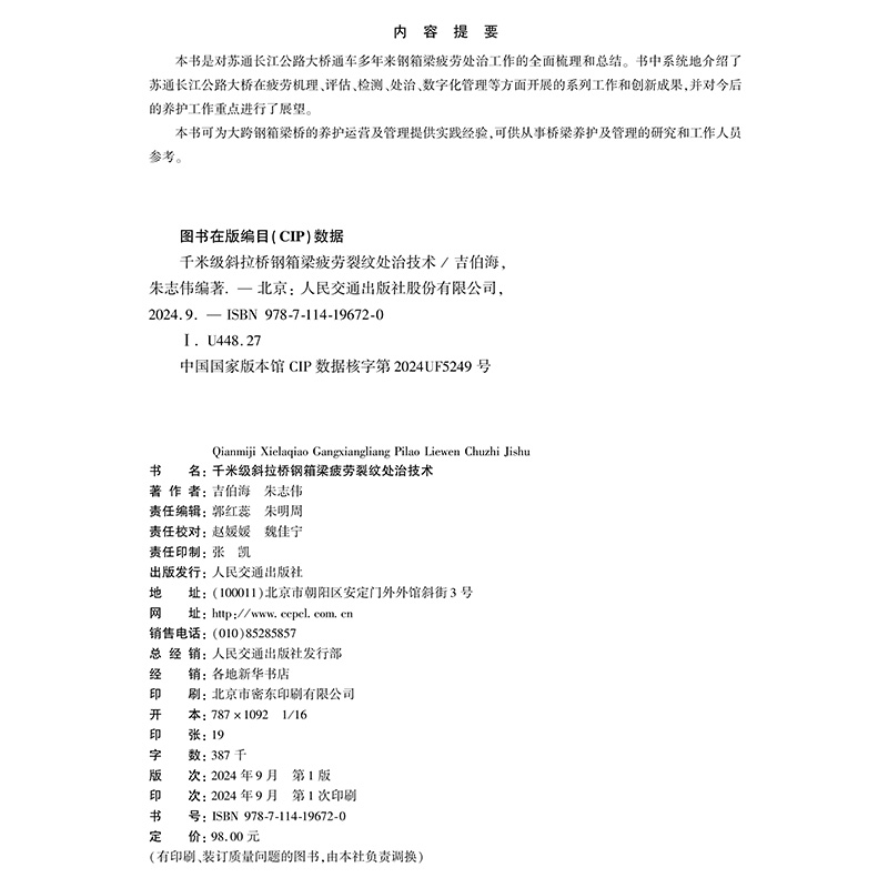 书名:千米级斜拉桥钢箱梁疲劳裂纹处治技术