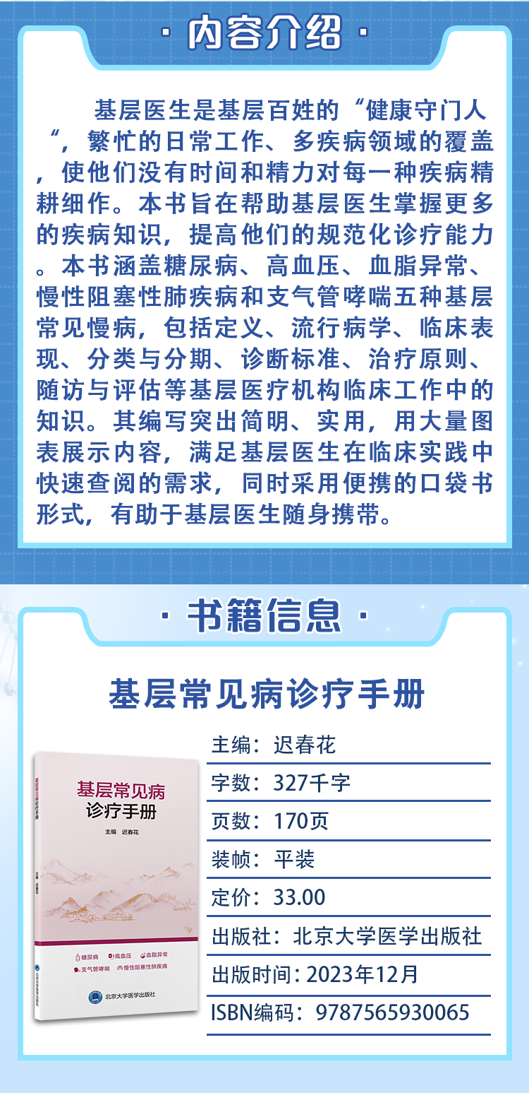 基层常见病诊疗手册 涵盖糖尿病高血压血脂异常支气管哮喘等临床表现 诊断标准 治疗原则 随访 北京大学医学出版社9787565930065