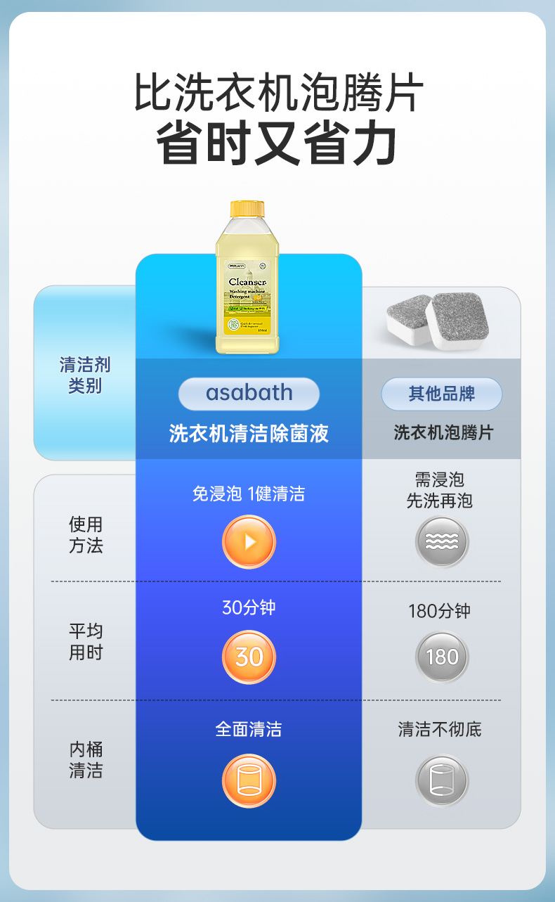 asabath 洗衣机清洁剂 芬兰百年家清品牌 除霉除垢 西班牙植物精油 进口MEI活性成份不伤机身