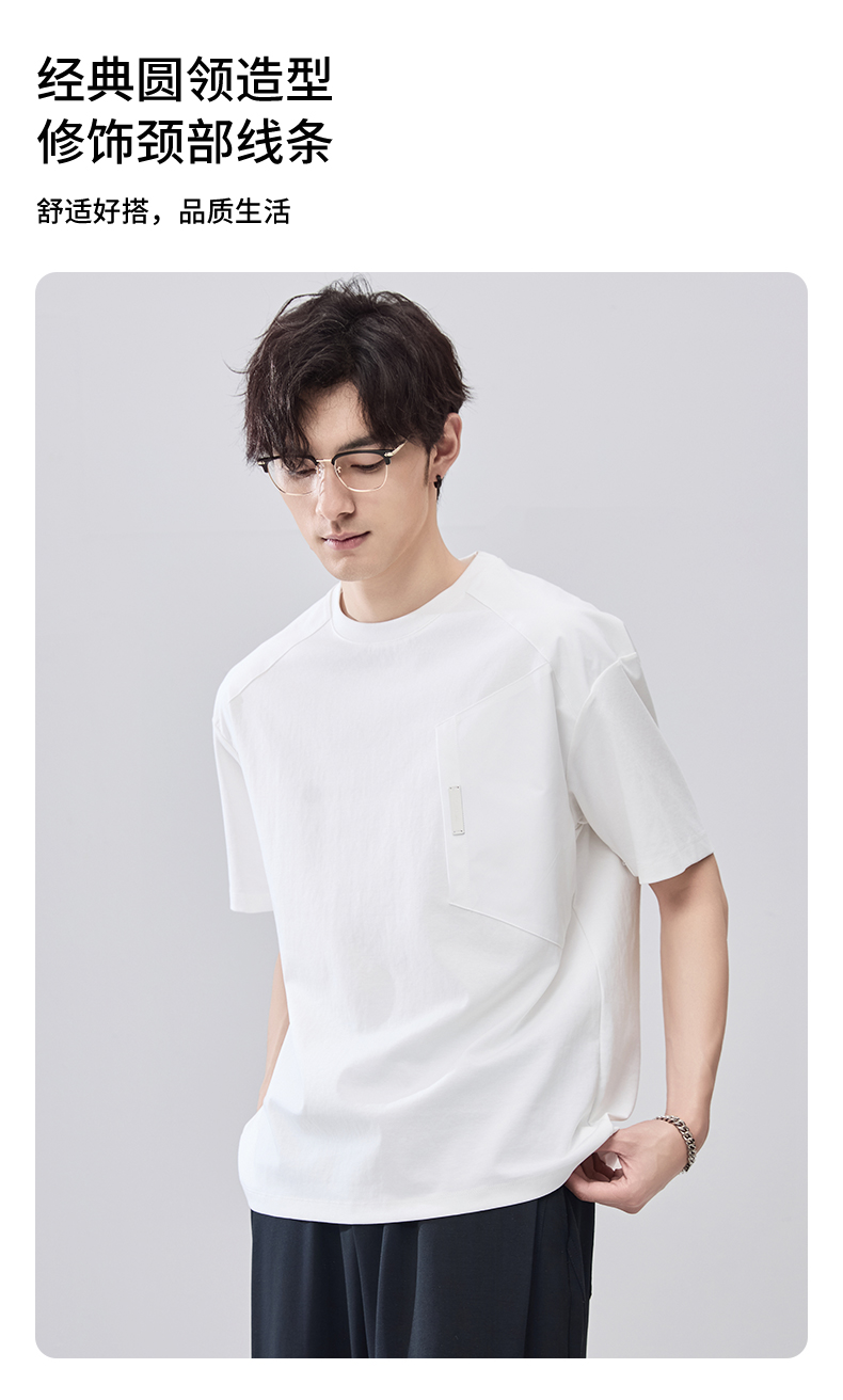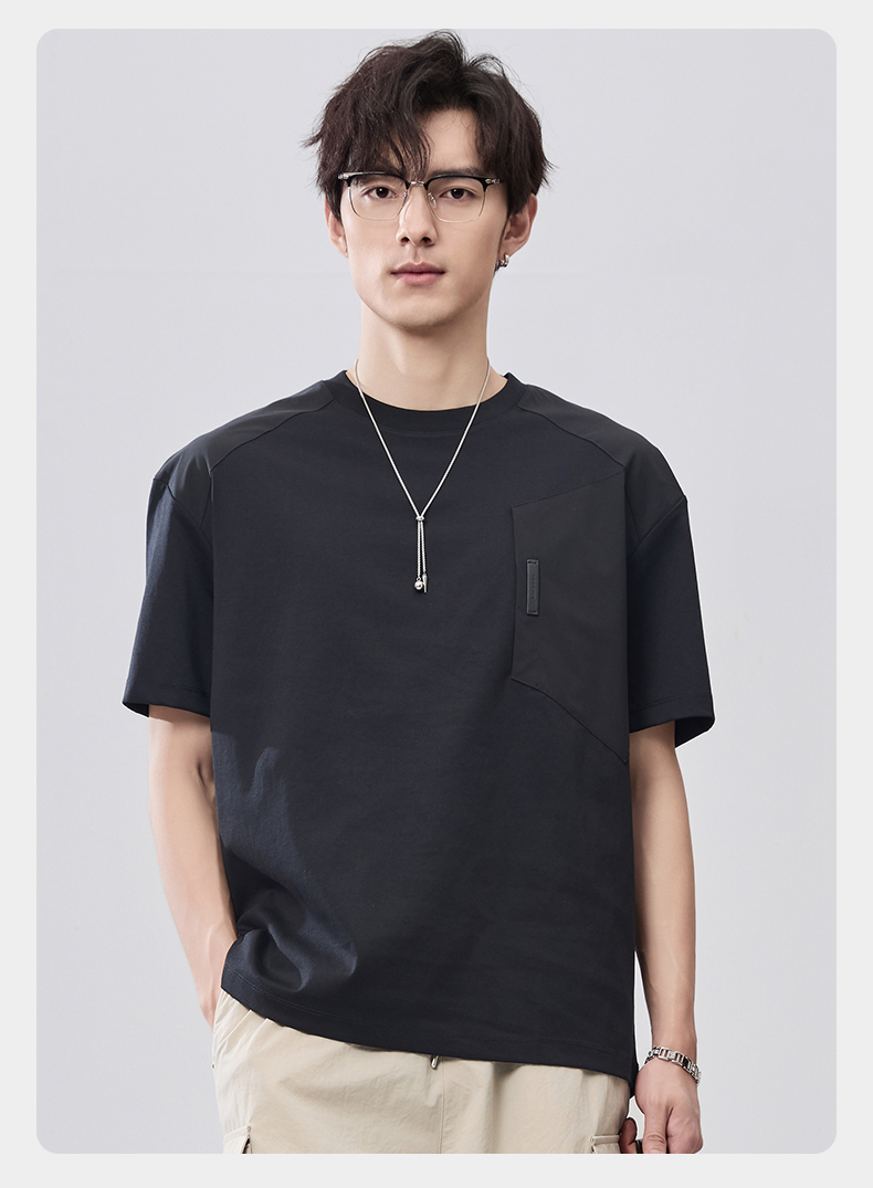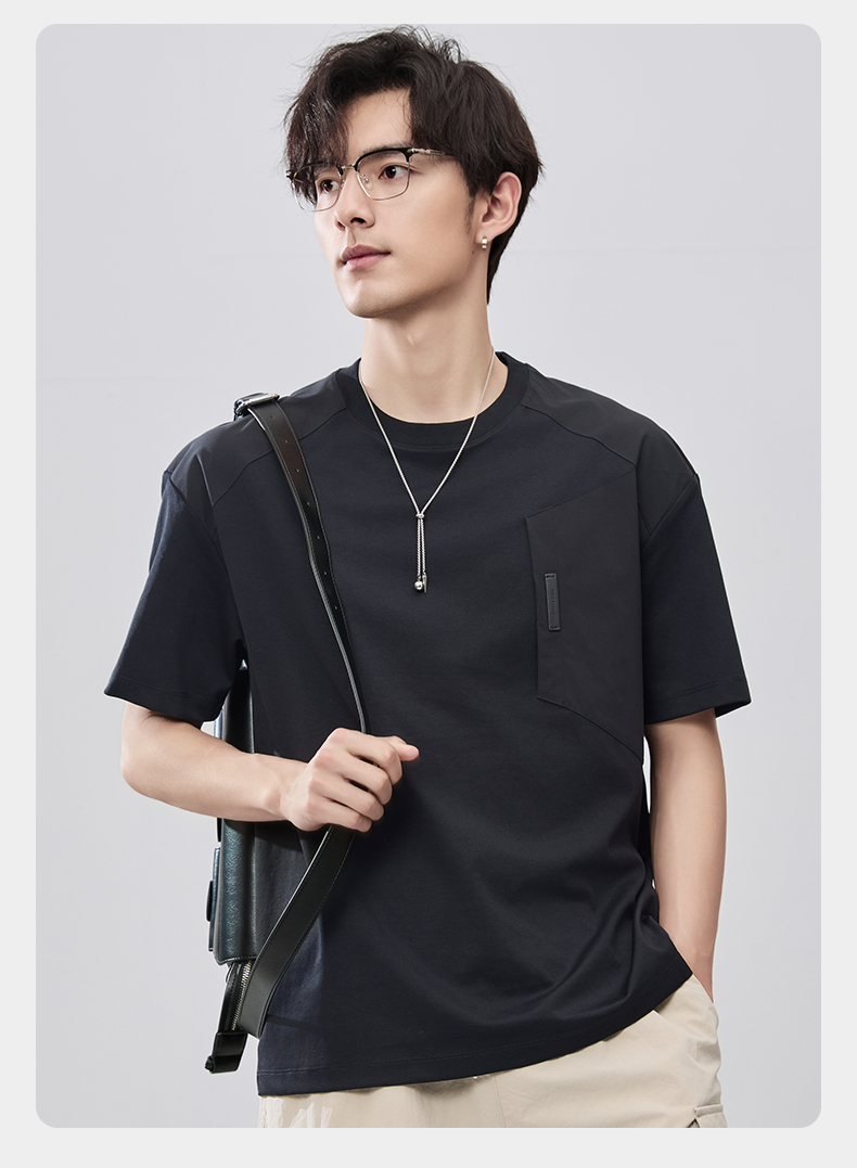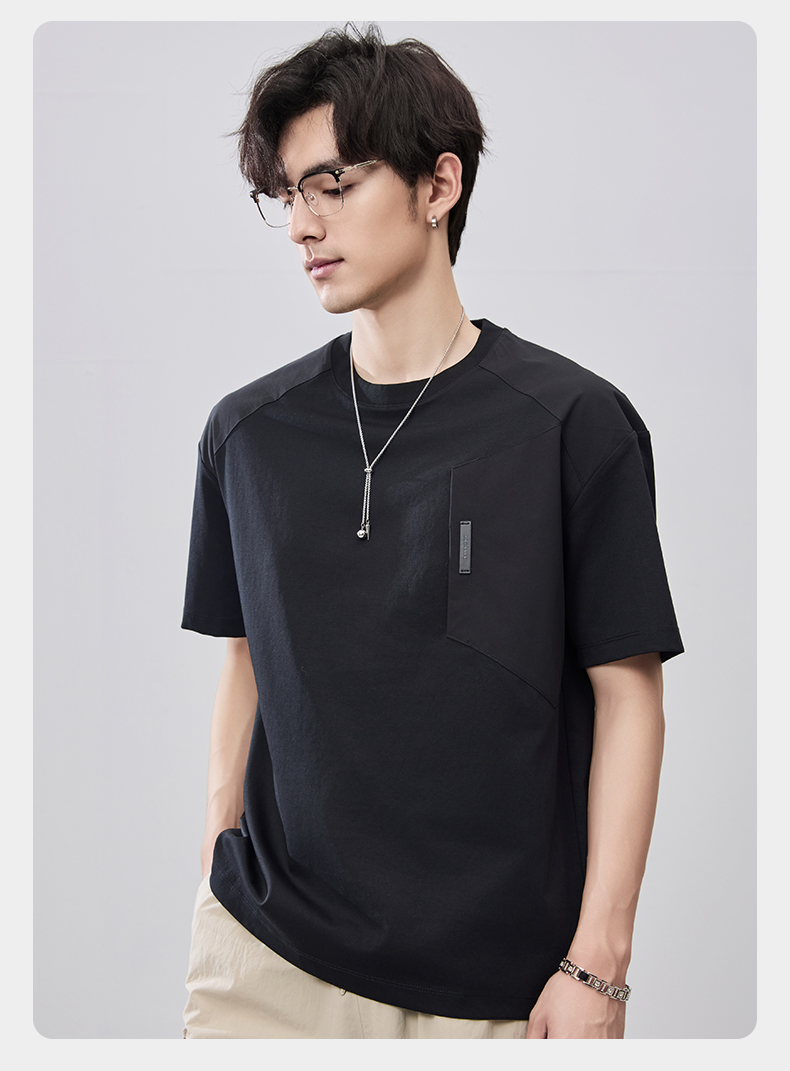 贝纳川夏季圆领拼接短袖T恤 ECF214013