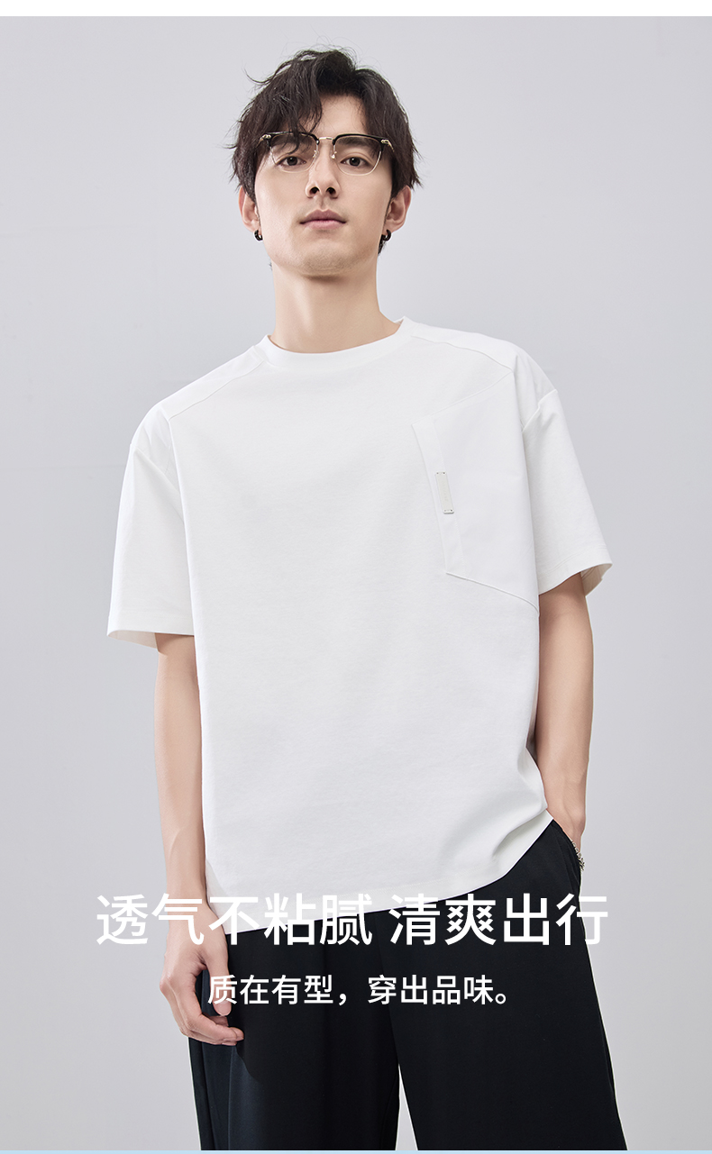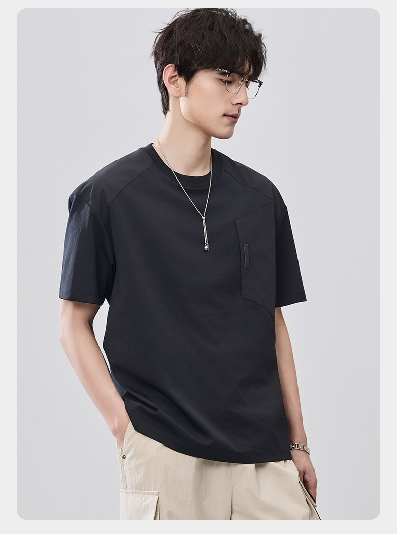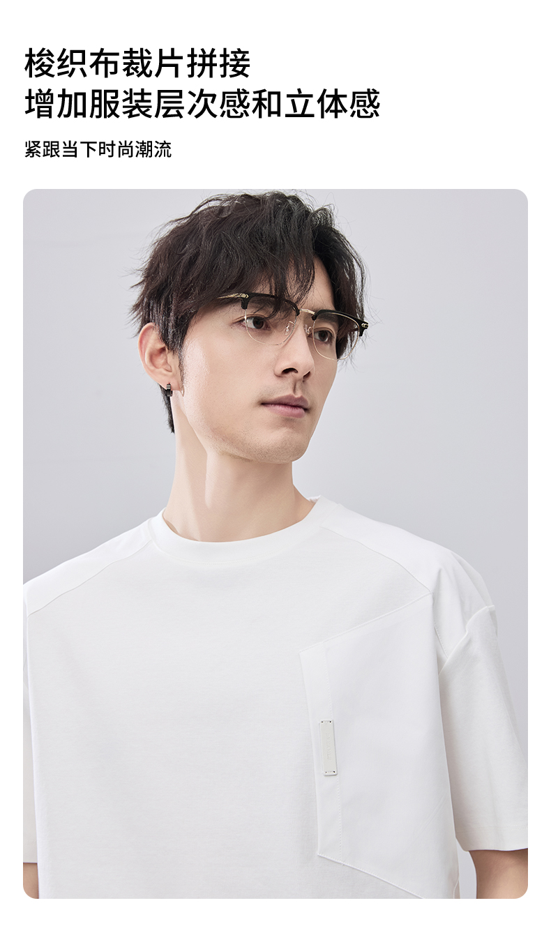 贝纳川夏季圆领拼接短袖T恤 ECF214013