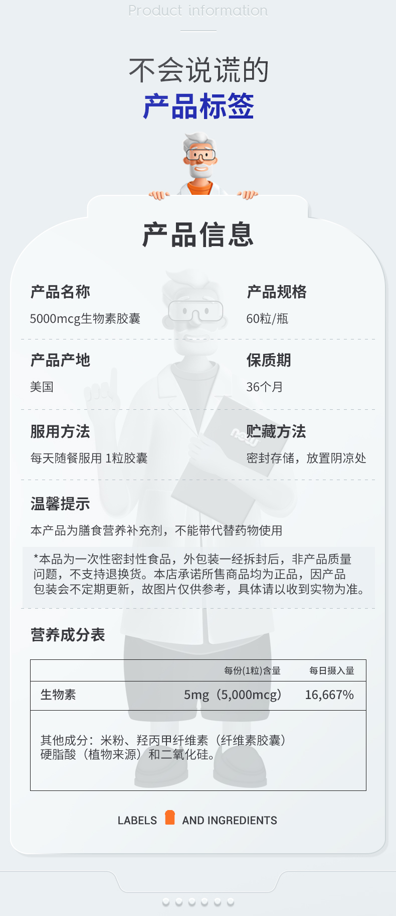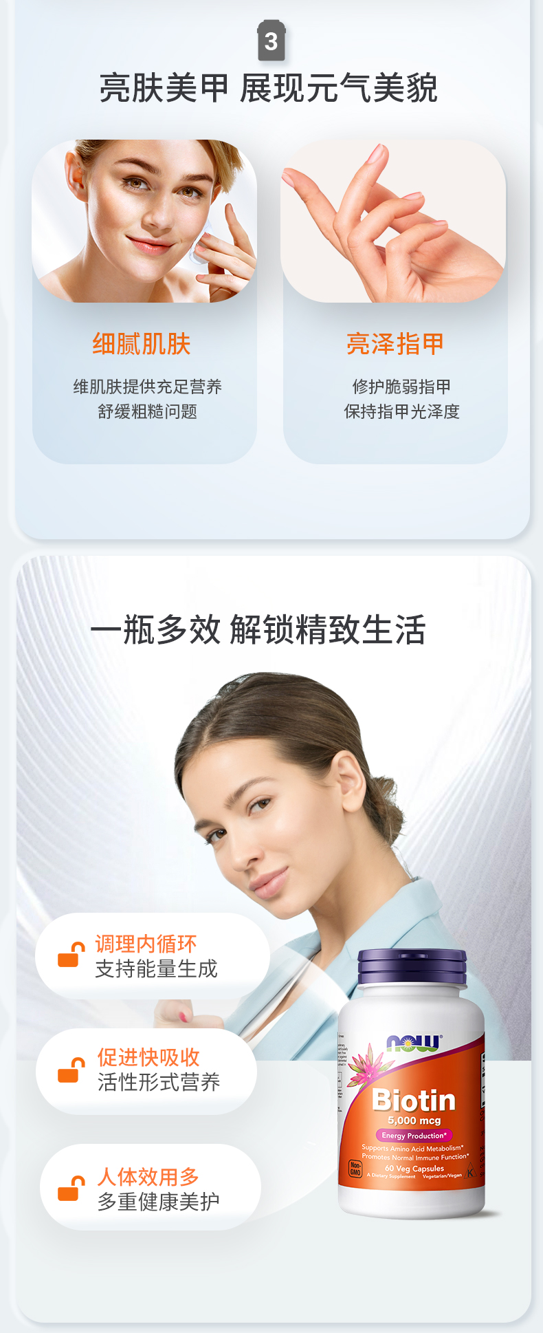 NOW诺奥生物素胶囊5000mcg 60粒/瓶