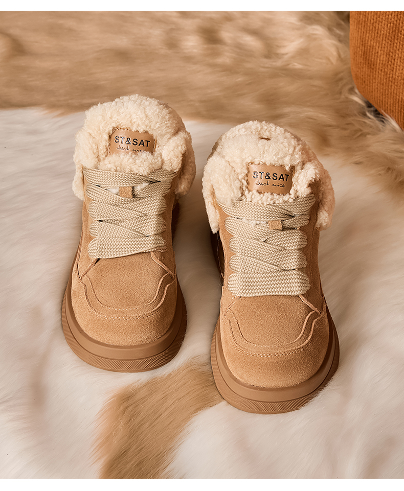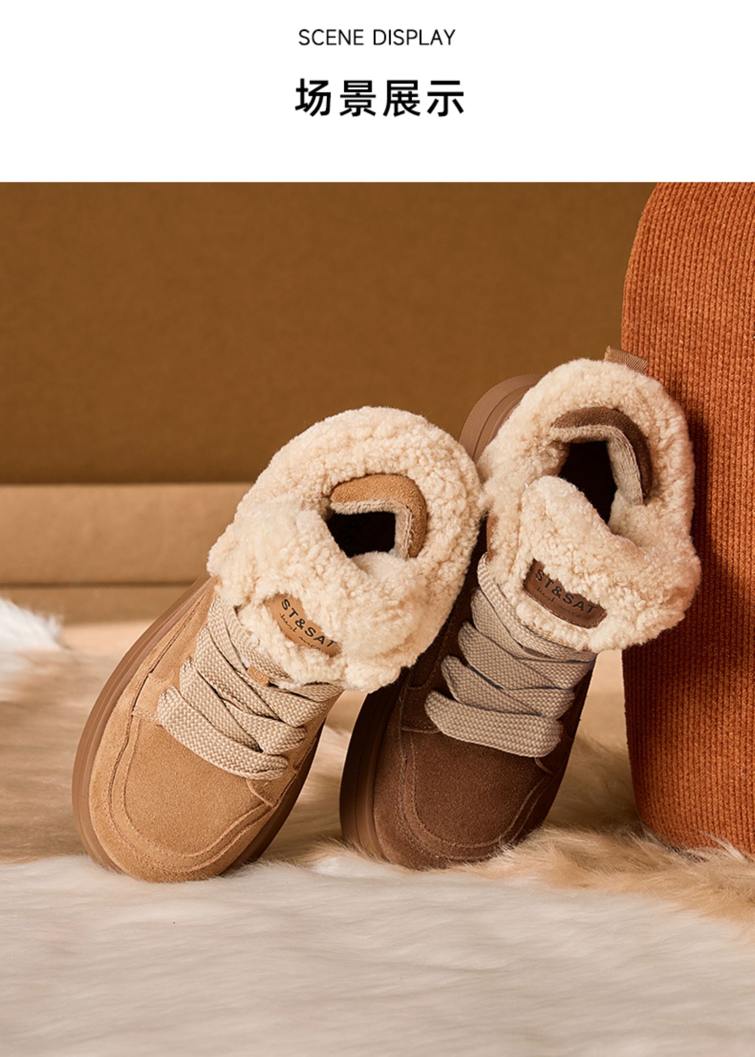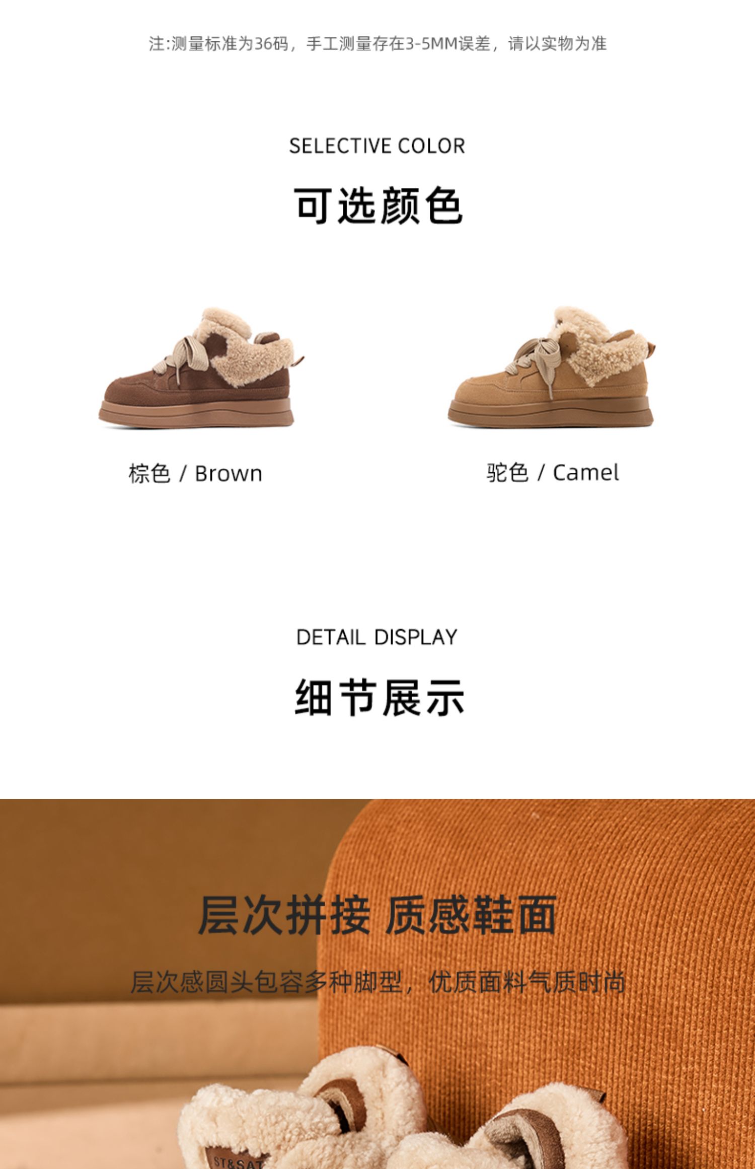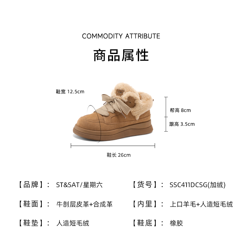 星期六复古百搭毛领保暖加绒厚底棉鞋SSC411DCSG