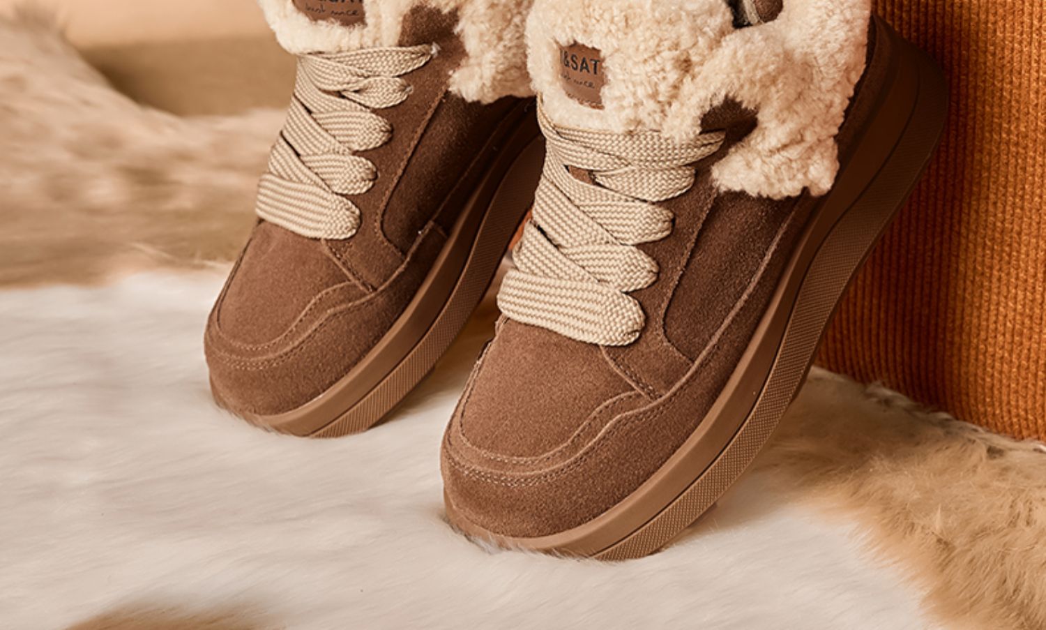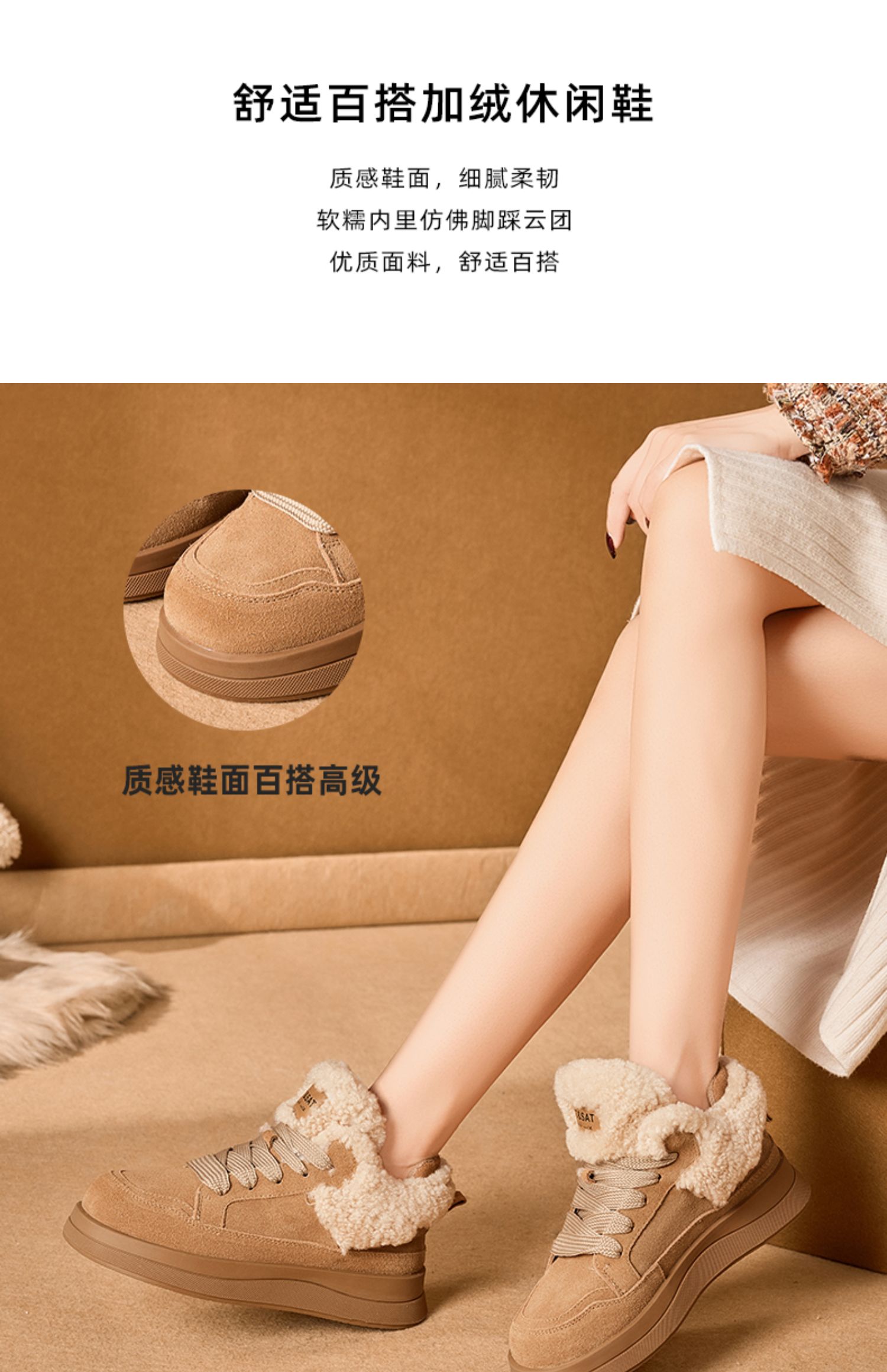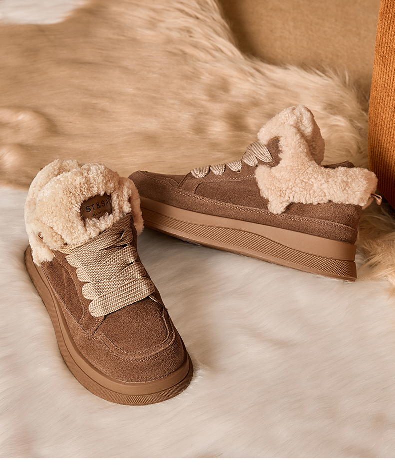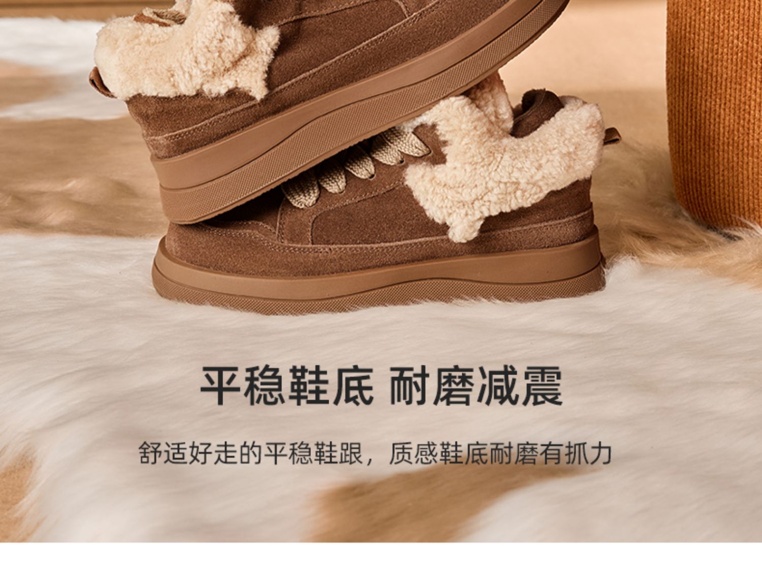 星期六复古百搭毛领保暖加绒厚底棉鞋SSC411DCSG