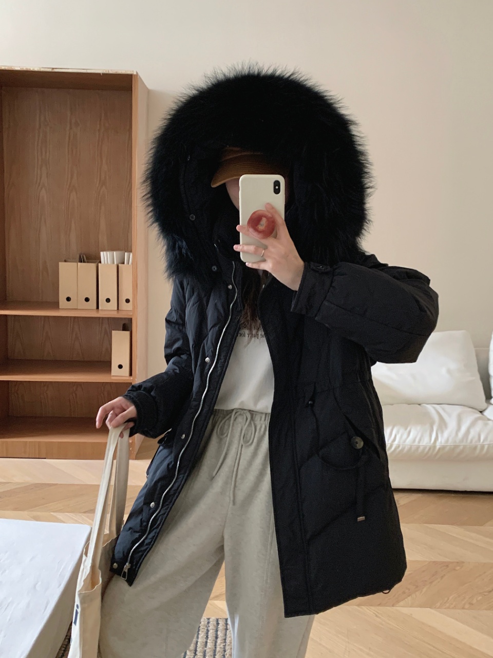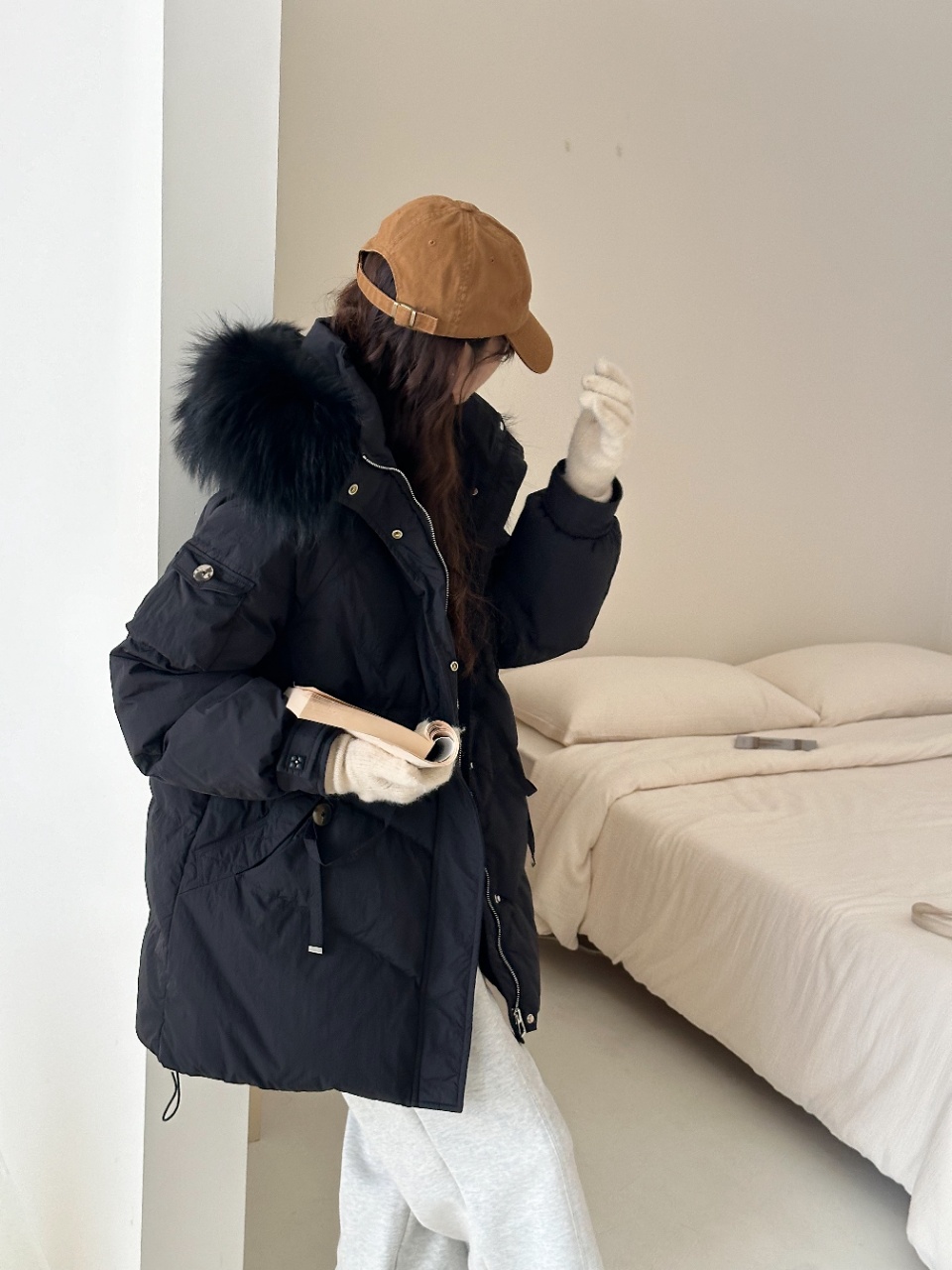 【YW】无忧购冬季50绒毛领羽绒服女中长款可调节收腰外套01