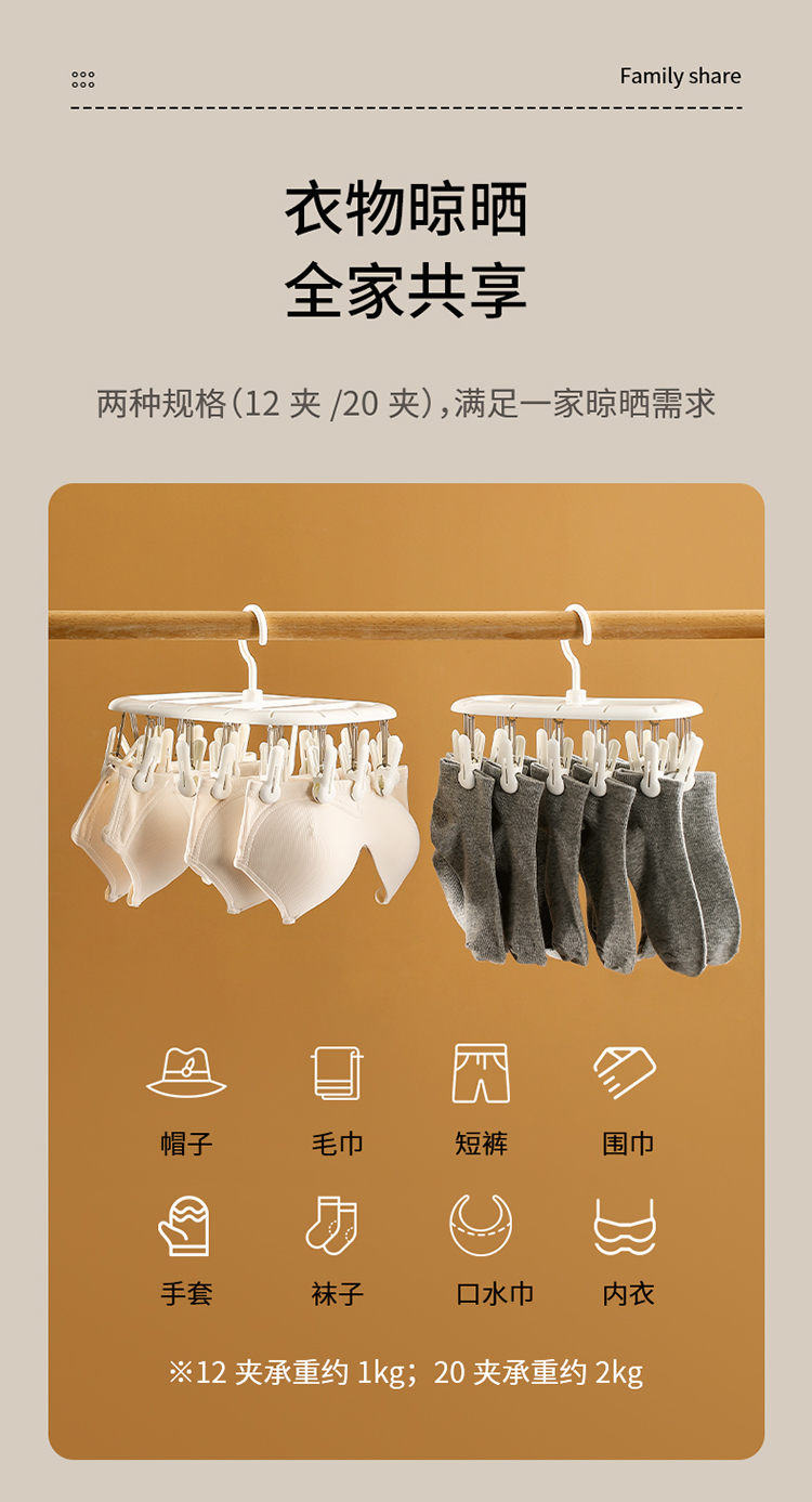 FaSoLa袜子晾晒架家用内衣内裤多功能阳台晾衣架儿童多夹子防风神器