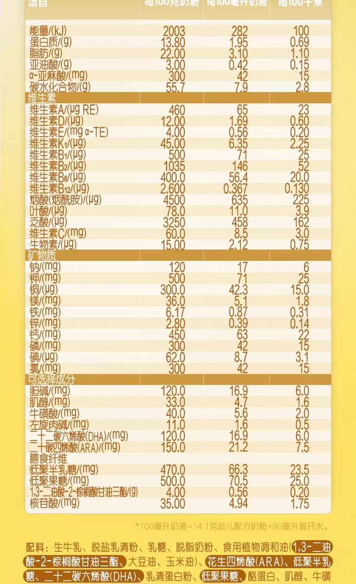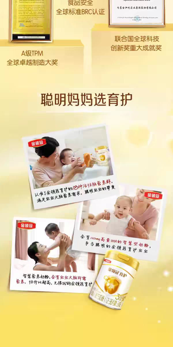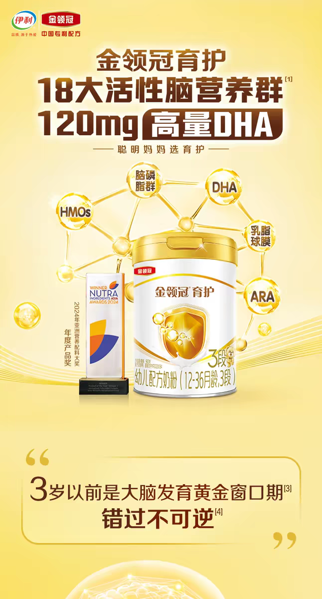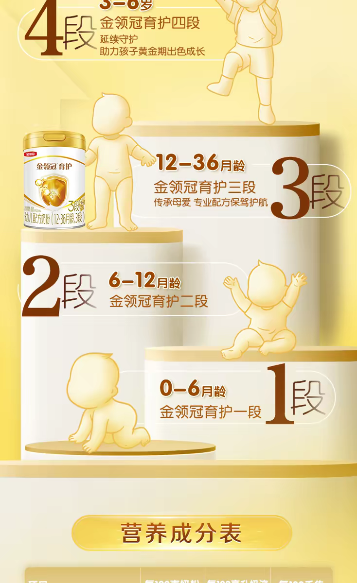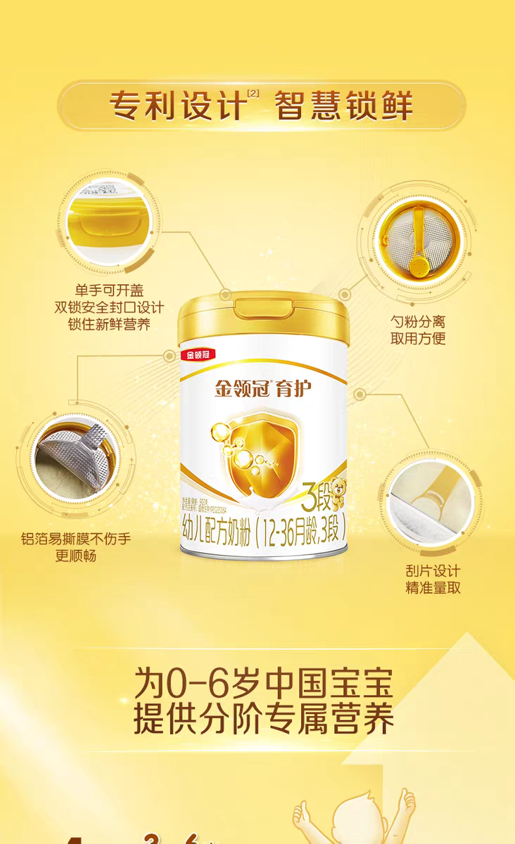 伊利金领冠基础育护3段1-3岁婴幼儿配方DHA牛奶粉三段900g*6罐